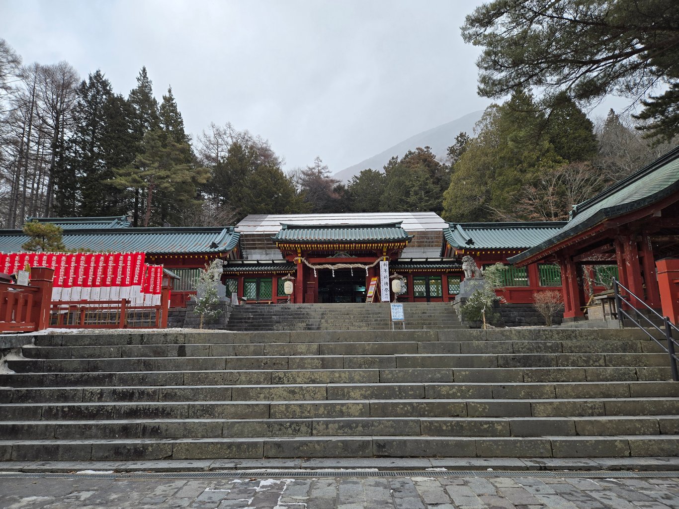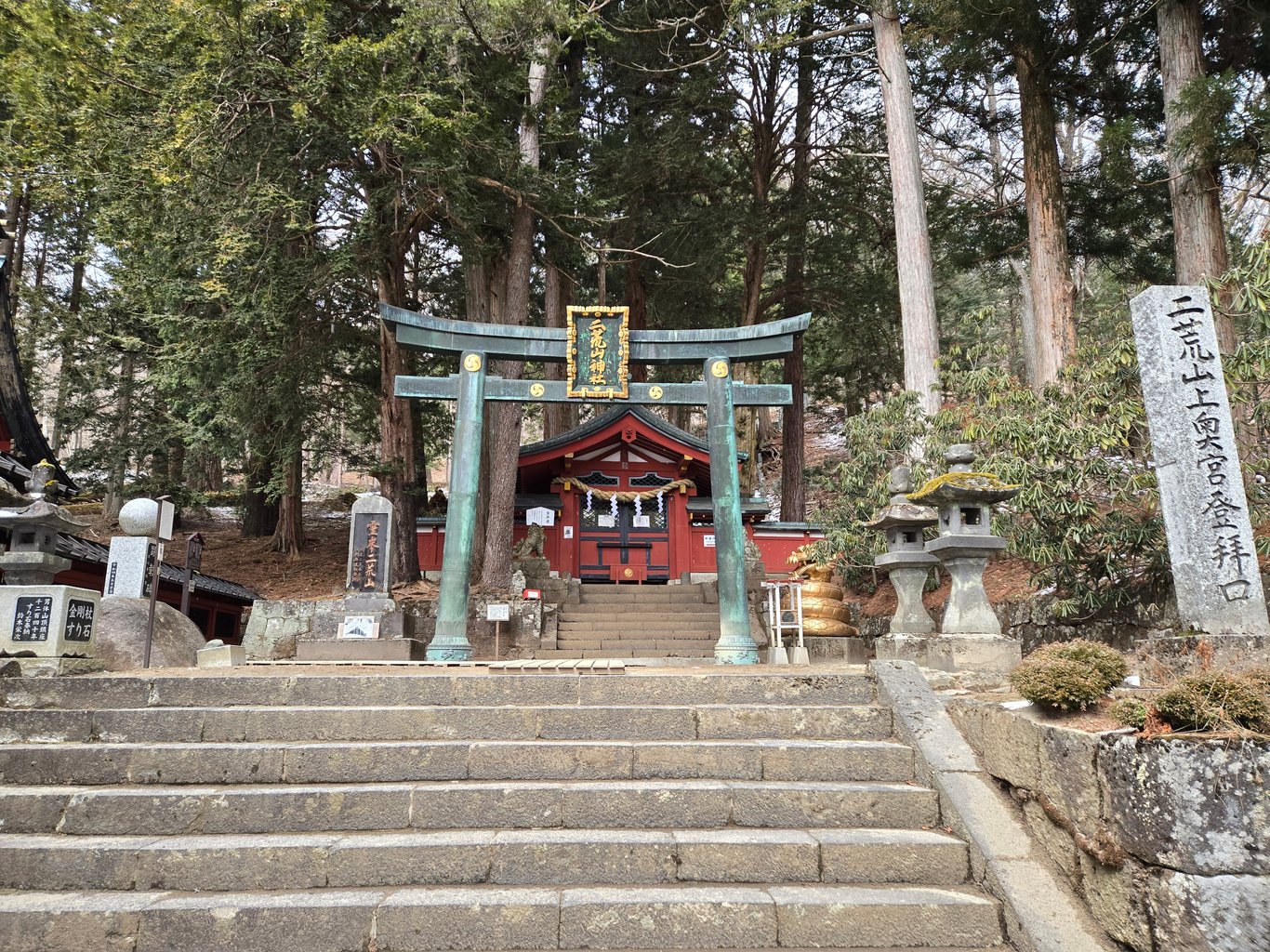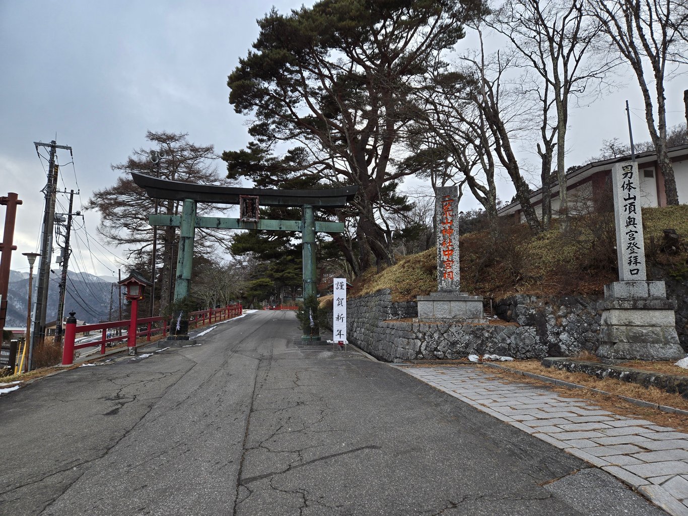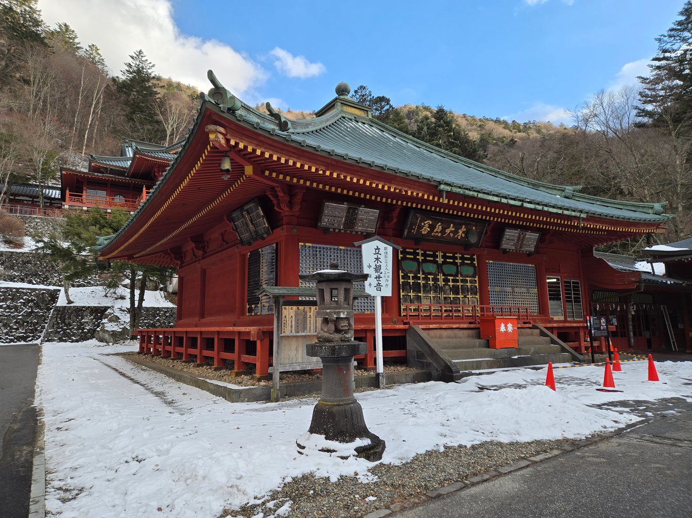 沿着湖岸很快到了二荒山神社中宫祠。这里其实才是二荒山神社真正重要的部分,不过大殿正在修。但建筑不是重点,本地爬杆认为,背后的男体山就是神体——这在日本神道中很常见,很多供奉神山的神社,神体就是山,神社就修在登山口前。不过我当然不会去爬,说明上说单程要6-7小时,那么以我的体力就是单程要10-12小时——我要爬山得死在山上。更何况冬季封山。神社有个宝物殿,里面有很多古刀和大太刀,但我强烈建议不要去看。因为门票要一千!就这玩意要一千日元?