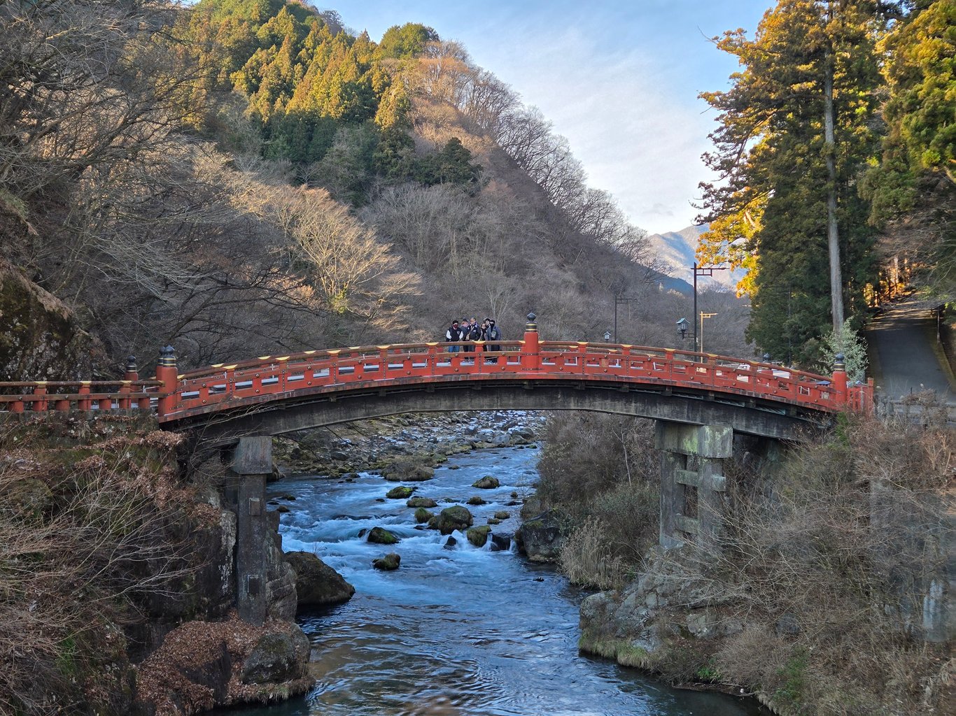 第一站当然是往日光的寺社去,毕竟就在当门口。坐公交到神桥站下,映入眼帘的就是一抹红色的拱桥,下方流水潺潺,非常让人受用。注意,这桥不是日光东照宫的,是日光二荒山神社的。在这里我就感觉不对劲,神桥是围起来的,上桥需要交300日元。在接下来的旅途中我才发现,我这是第一次来到日本纯靠旅游挣钱的地方,此地的门票和交通费相比东京都很贵,而且每一步都在变着法子引诱你花钱,恨不得把一个寺社拆成二十份收钱。