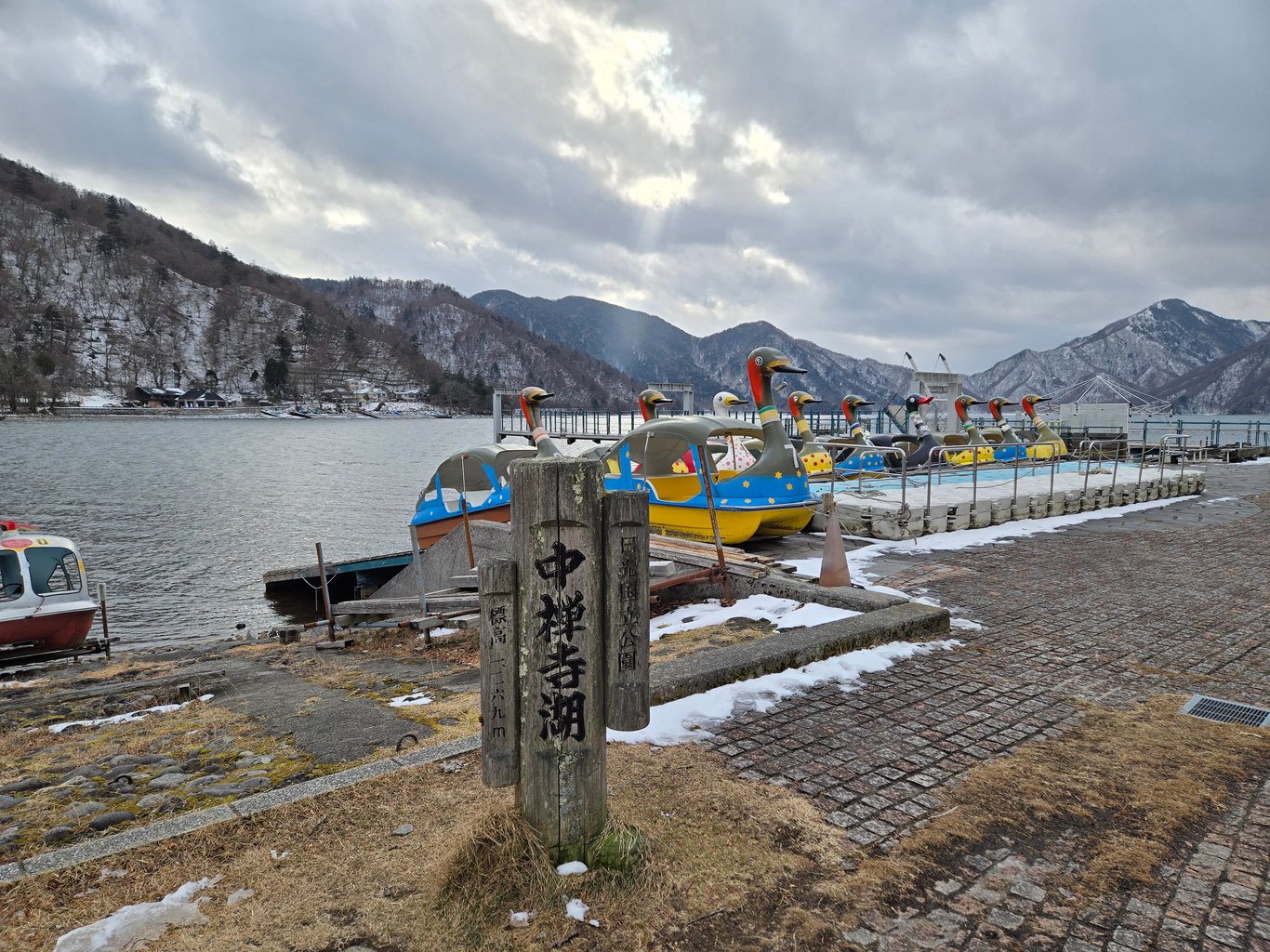 我沿着中禅寺湖湖岸向西北行走,冬天没有游船,中禅寺湖很大,只能在一角游荡,真是遗憾。景色也不错,但不知道为什么,那天我走的时候,这一段弥漫着一股大粪的味道!