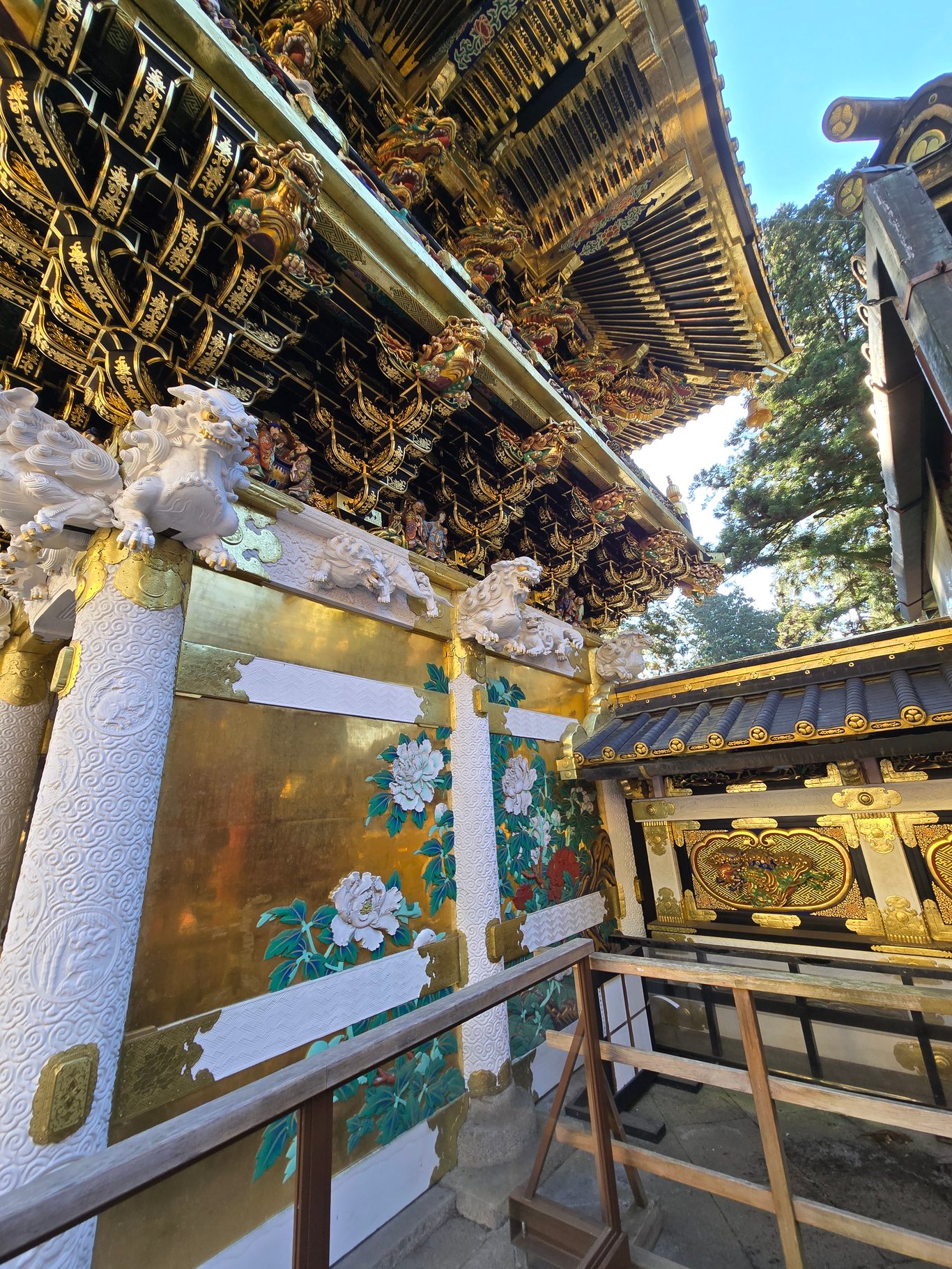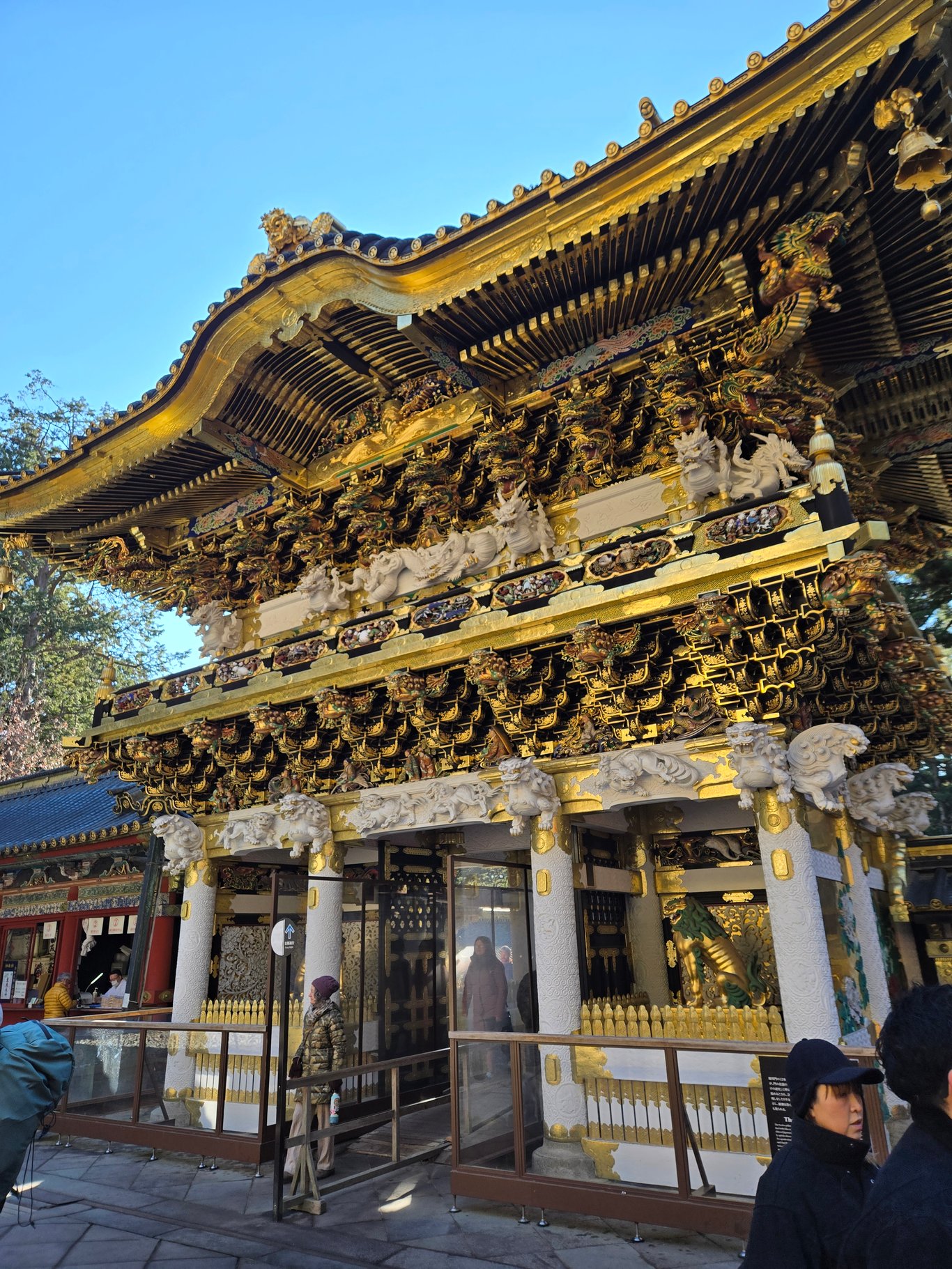 然后进入阳明门。多说无益,看就是了。阳明门金碧辉煌,每一寸都非常精美,这才是近世审美近世气度,这就是雕梁画栋!看得人心痒痒,一心想给偷走。然后可以上殿,对的,日光东照宫可以进主殿。虽然不给拍照,但也是很好看的。