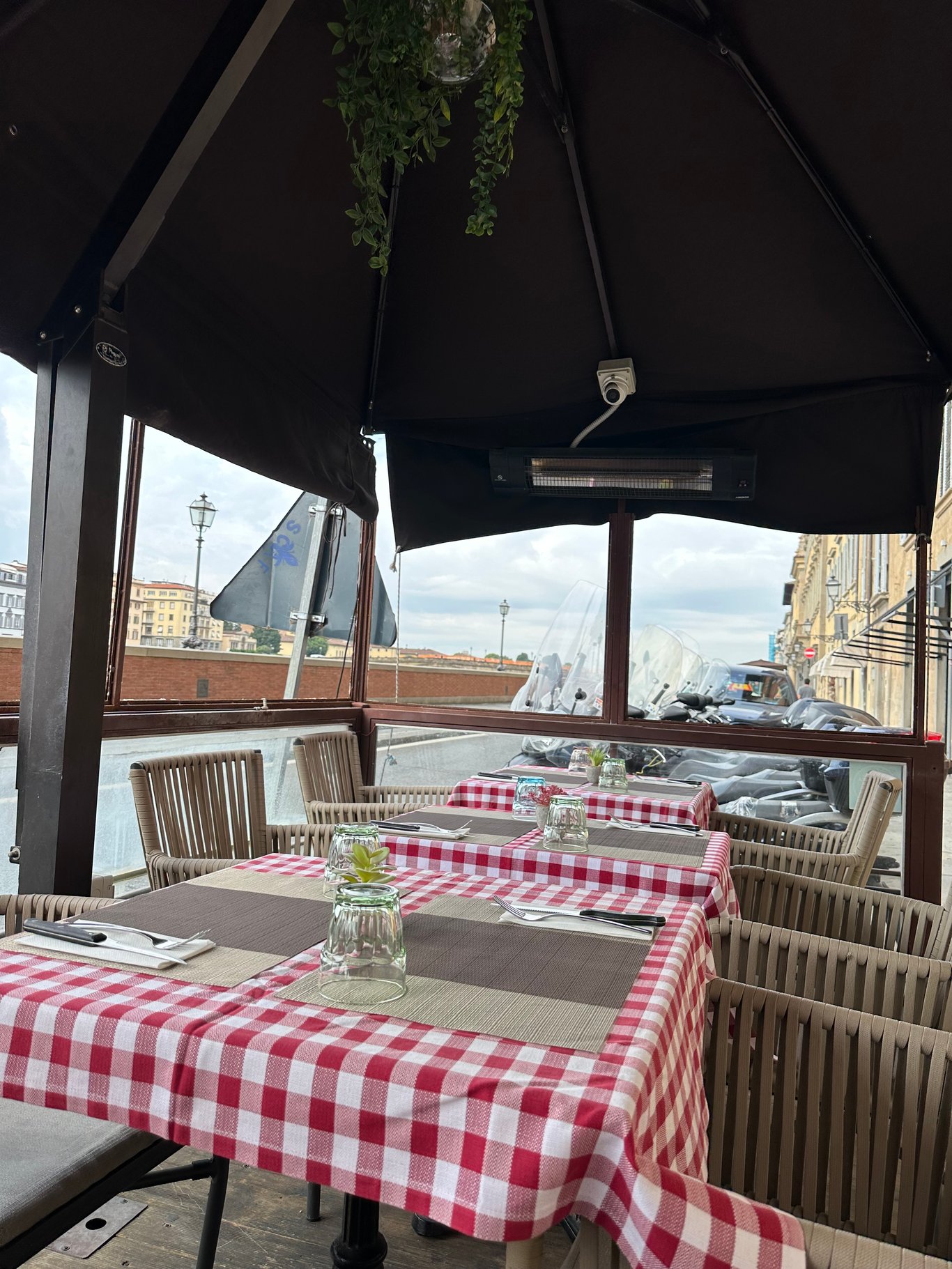 我们在佛罗伦萨的第二天中午,原本也是想去我们第一天去的那家dabarba吃。但是这里的餐厅基本上是在中午12 点后才开张。我们等到12 点,还是没有看到那家餐厅开张。所以就干脆选择了它不远处的另一家意大利餐厅。他们不到12 点就开着了,也许是想多招揽一些跟我们这样这么早吃午餐的人吧。