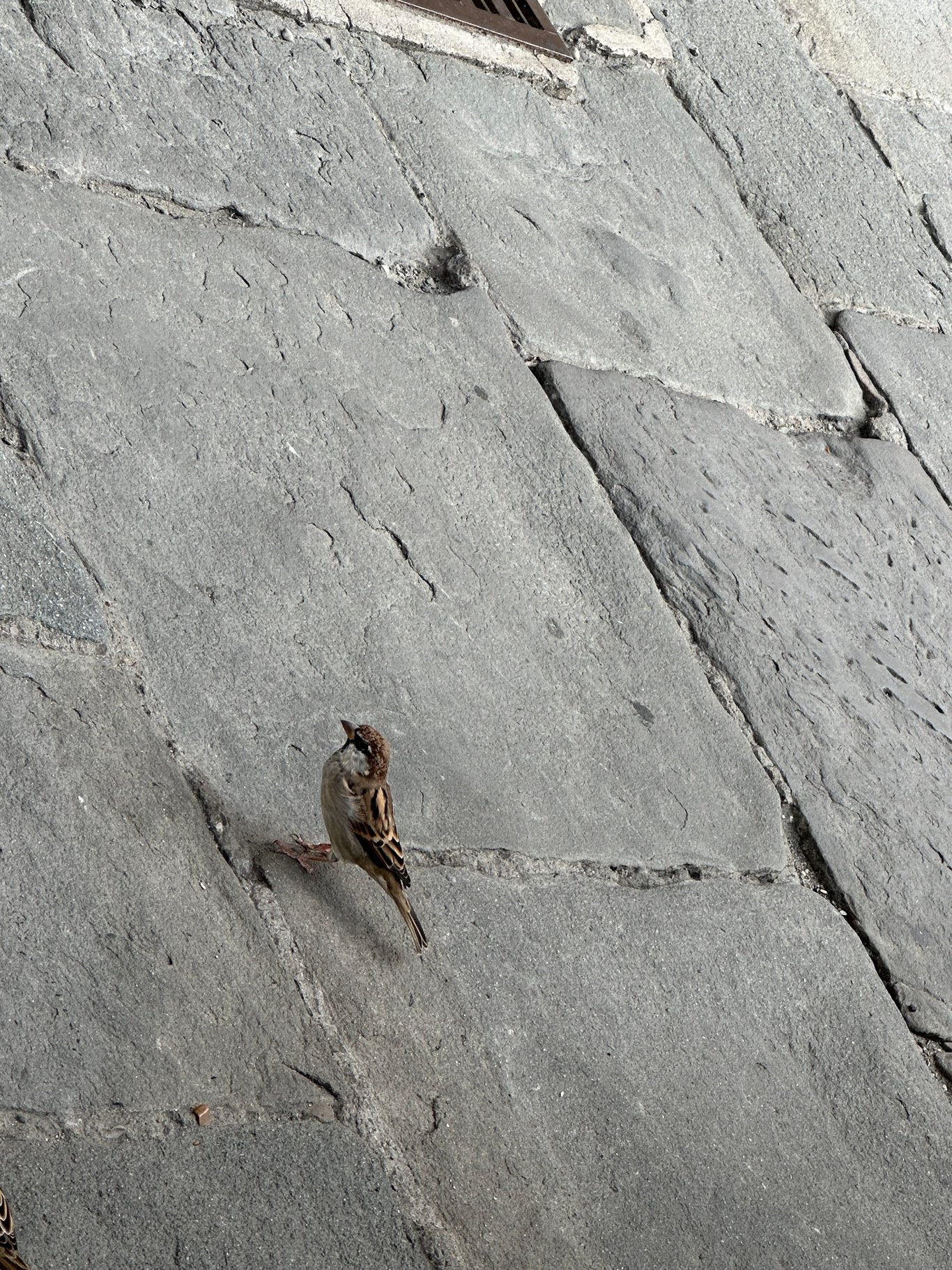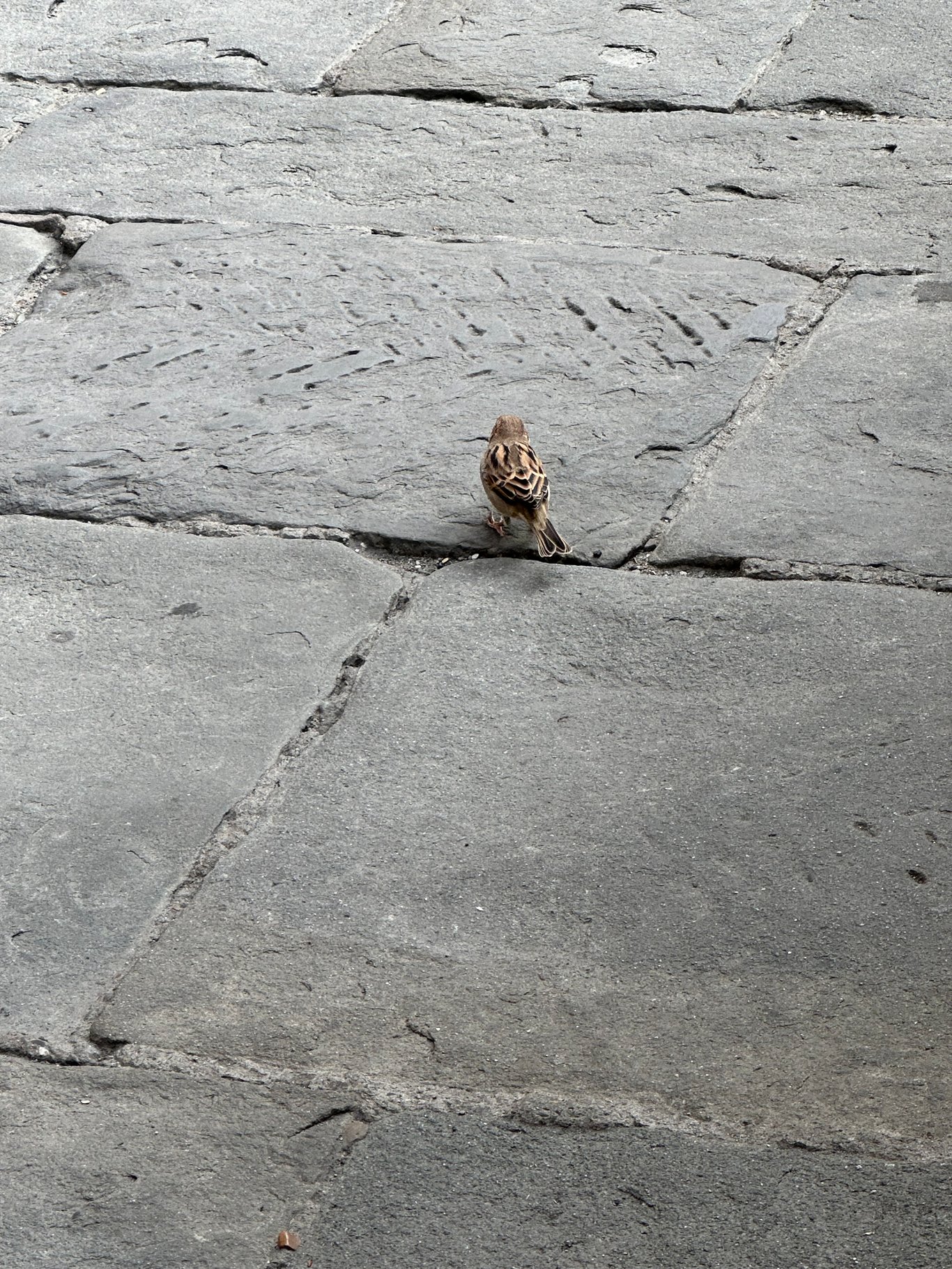 因为是户外,有小小鸟毫不客气地在地上觅食。估计是这里的常客,一点都不怕生。即便你走过去它也丝毫不紧张。可见这里的生态也是很平和的。