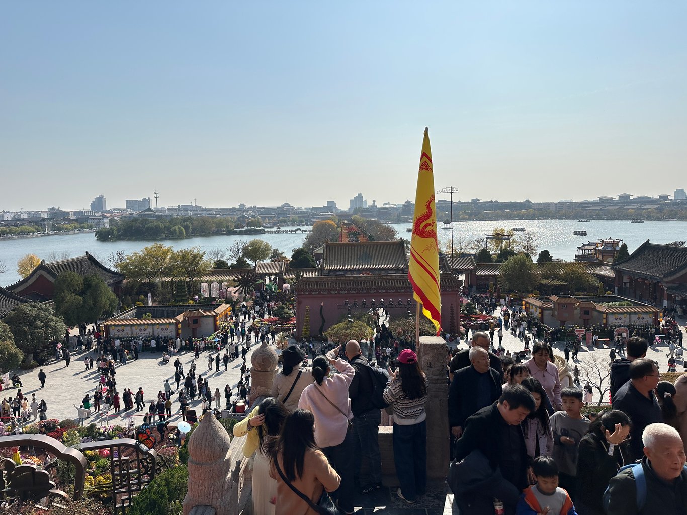 我离开清真北大寺往西,开封城正北是之前清朝八旗驻军的满城,往南到古城中心位置是龙亭公园,也就是曾经北宋皇宫的位置,北宋皇宫就在公园的湖下面,当然现在这里是游客非常拥挤的景区,登上龙亭台阶最高处远眺是很棒的体验。