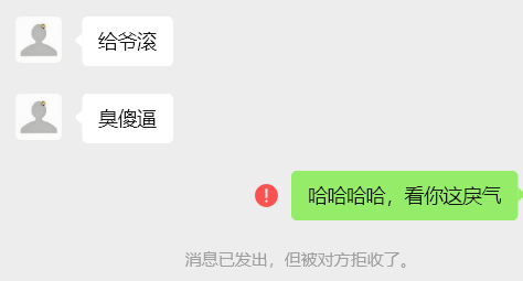 说理不过,恼羞成怒,只剩屁股决定脑袋了。然后还给我拉黑了,哈哈。
