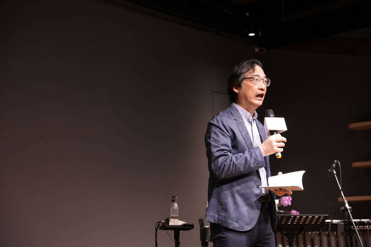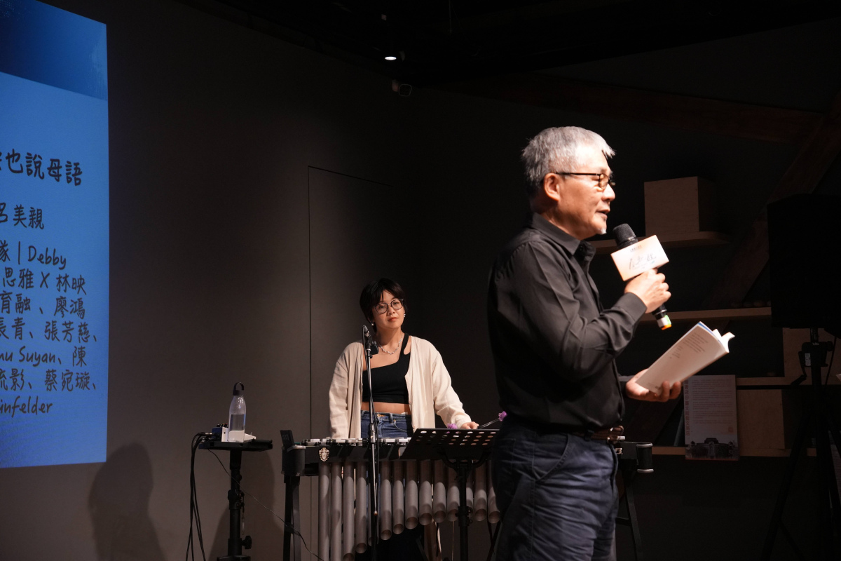 本次作家節除了邀請作家擔任講者,也特別邀請作家擔任活動寫手、專訪受邀的國際作家,留下作家寫作家的特別紀錄。臺文館特與Openbook合作推出專題,為歷時3周的文學節慶,留存創作的靈光與思辨。一個不怎麼冷的冬天夜晚,在臺灣文學糧倉的文學跨域舞台,舉辦了臺灣作家節「爵士樂也說母語」的跨域演出,除了讓9位作家以自己的母語現場朗誦、吟唱自己的詩歌外,同時也邀請3位爵士樂手:Debby Wang王思雅、林映辰、蕭育融,分別以鐵琴、薩克斯風以及電吉他,來為這些作家的母語吟唱來譜曲、演奏。類似的表演其實並不少見,但是以母語為主,搭配上爵士樂的演奏,對我來說卻是罕見的經驗。