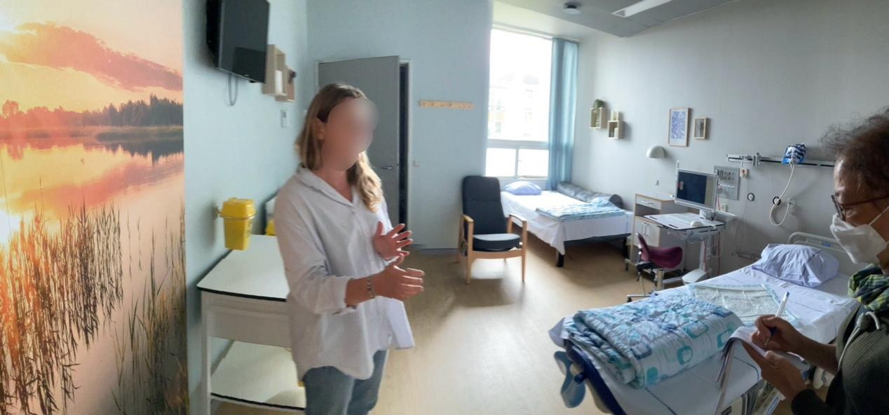 2023年我和生動盟的監事吳嘉苓(國立台灣大學社會系教授)一起參訪了丹麥最大醫院Hvidovre Hospital的產房,接待我們的助產師Louise也特別帶我們去看流產照護產房。Hvidovre Hospital的產房在空間(隱私)的區隔、房間內部的燈光與擺設也都有特別的巧思。除了一張單人病床外,房間的另一個角落也特別放置了陪產者的床,目的是讓女性和陪產者在醫院期間都能夠好好休息。
