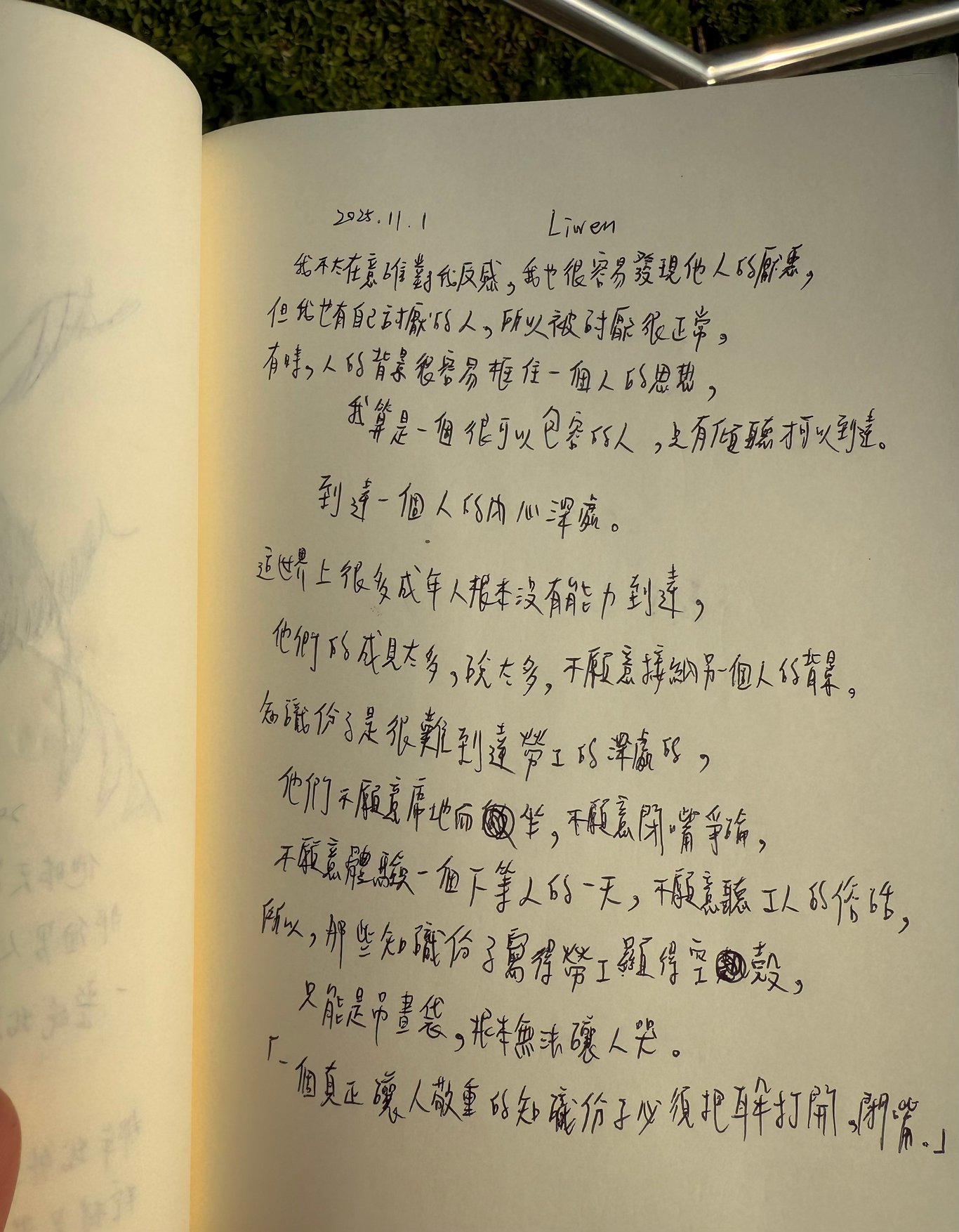 很多時候那些人會靠近我想聊上幾句,似乎有話要說,我簡短地切斷話題,疲憊的時候不想聽太多,回到自己身上,連結似乎是這樣的,必須兩邊都想要,一方不願意就被切斷連結了。