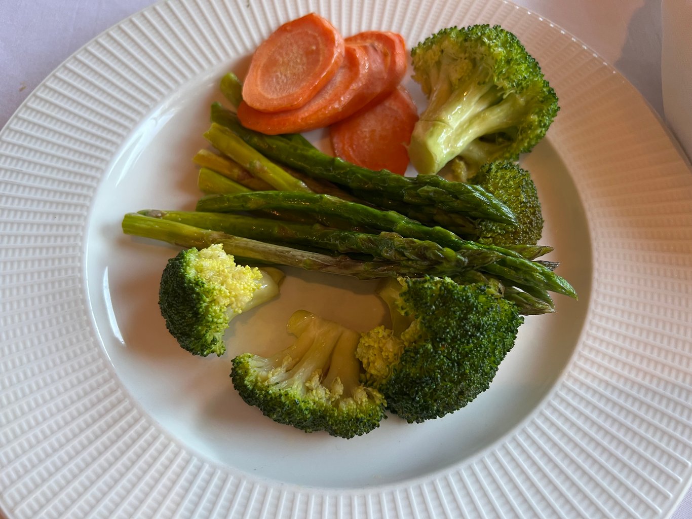 晚餐的菜式一如以往高水準,不知是否昨天付了小費,我的專屬侍應Pravin說每晚都會為我準備額外的蘆筍蔬菜。 我連番謝謝, 心中盤算如果每晚也如此服務,可能要再付小費。