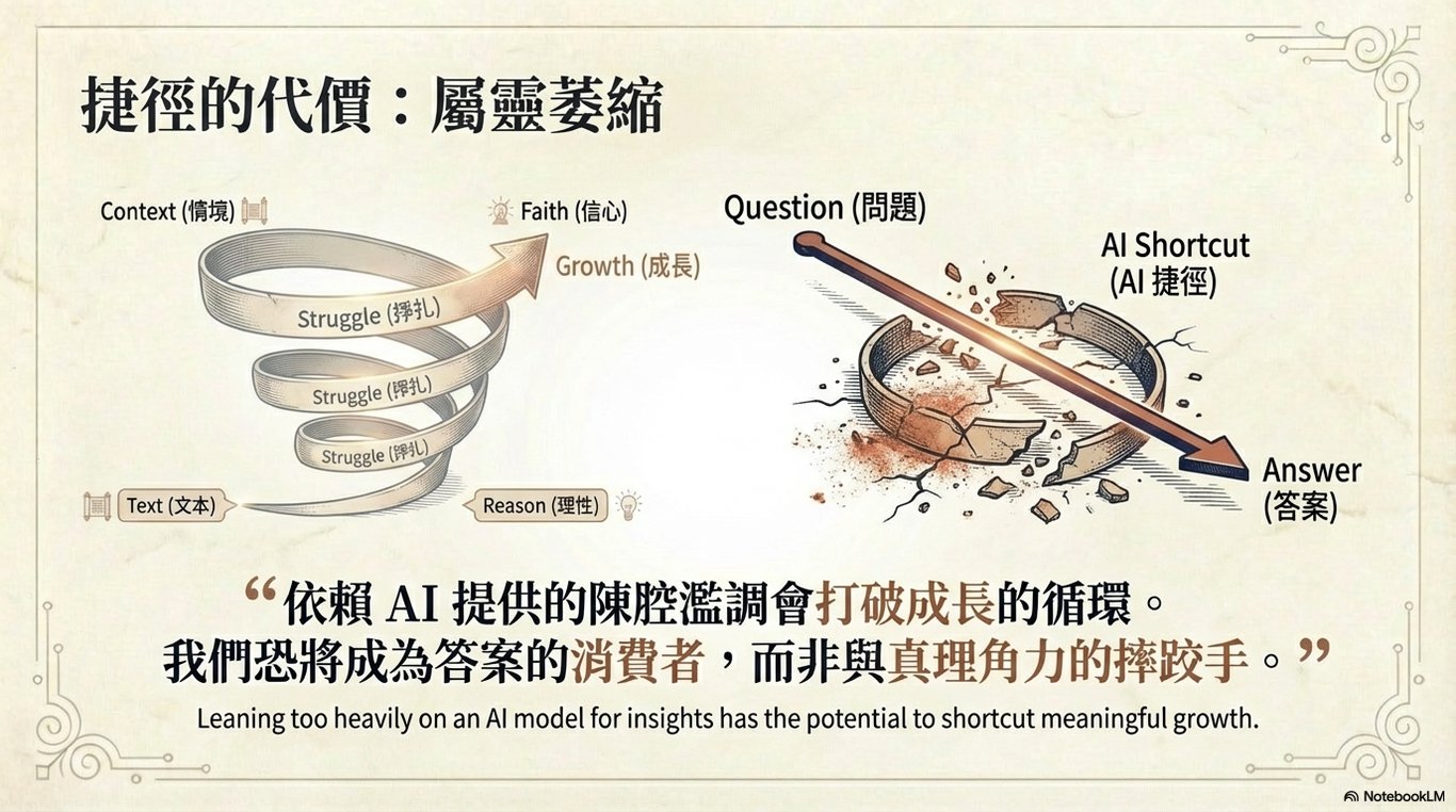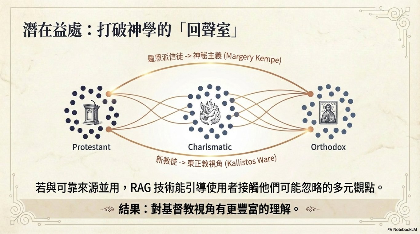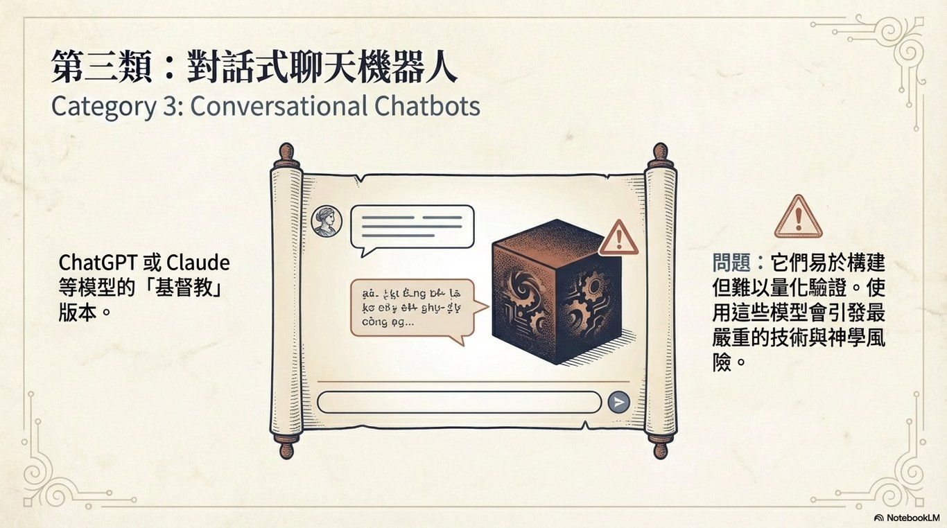 其最大的優點在於互動性,您可以像與一位老師對話一樣,自由地提問、追問,並獲得即時的回應與解釋。然而,正是這種即時互動和內容生成的特性,也使其成為最容易引發技術和神學問題的工具。因此,使用者在與其互動時,應保持審慎的態度。