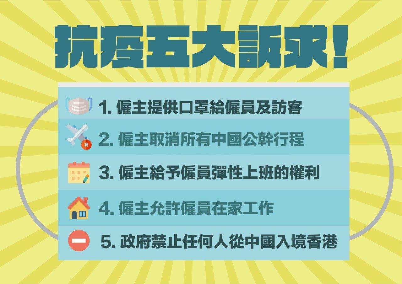 因此,各工會聯合提出「抗疫五大訴求」: