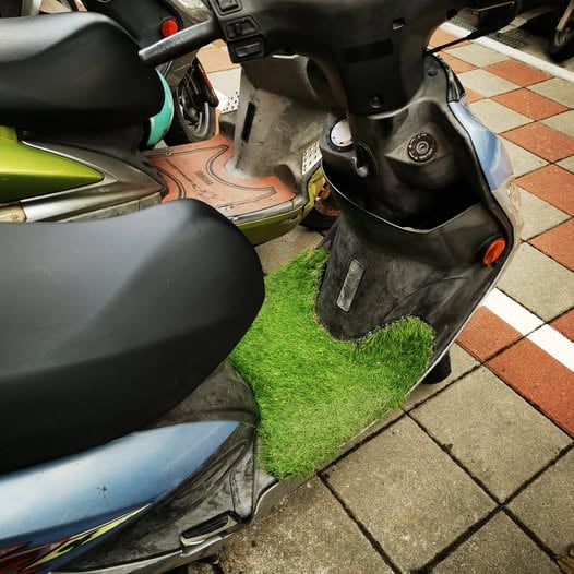 機車腳踏墊改為草皮,堪稱經典😆😆😆