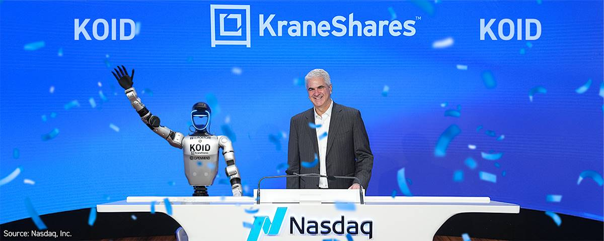 在纳斯达克举办的由 KraneShares 推出的 ETF 挂牌仪式上,由 OpenMind 推出的搭载 OM1 操作系统的人形机器人亮相现场,并参与了上市启动环节。