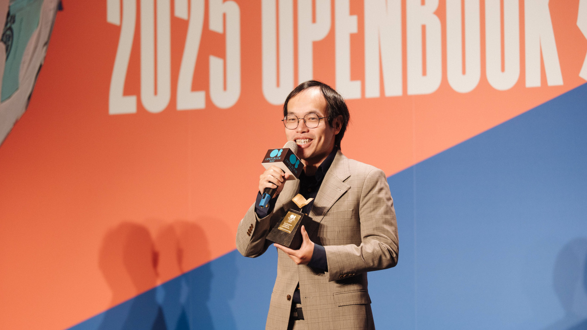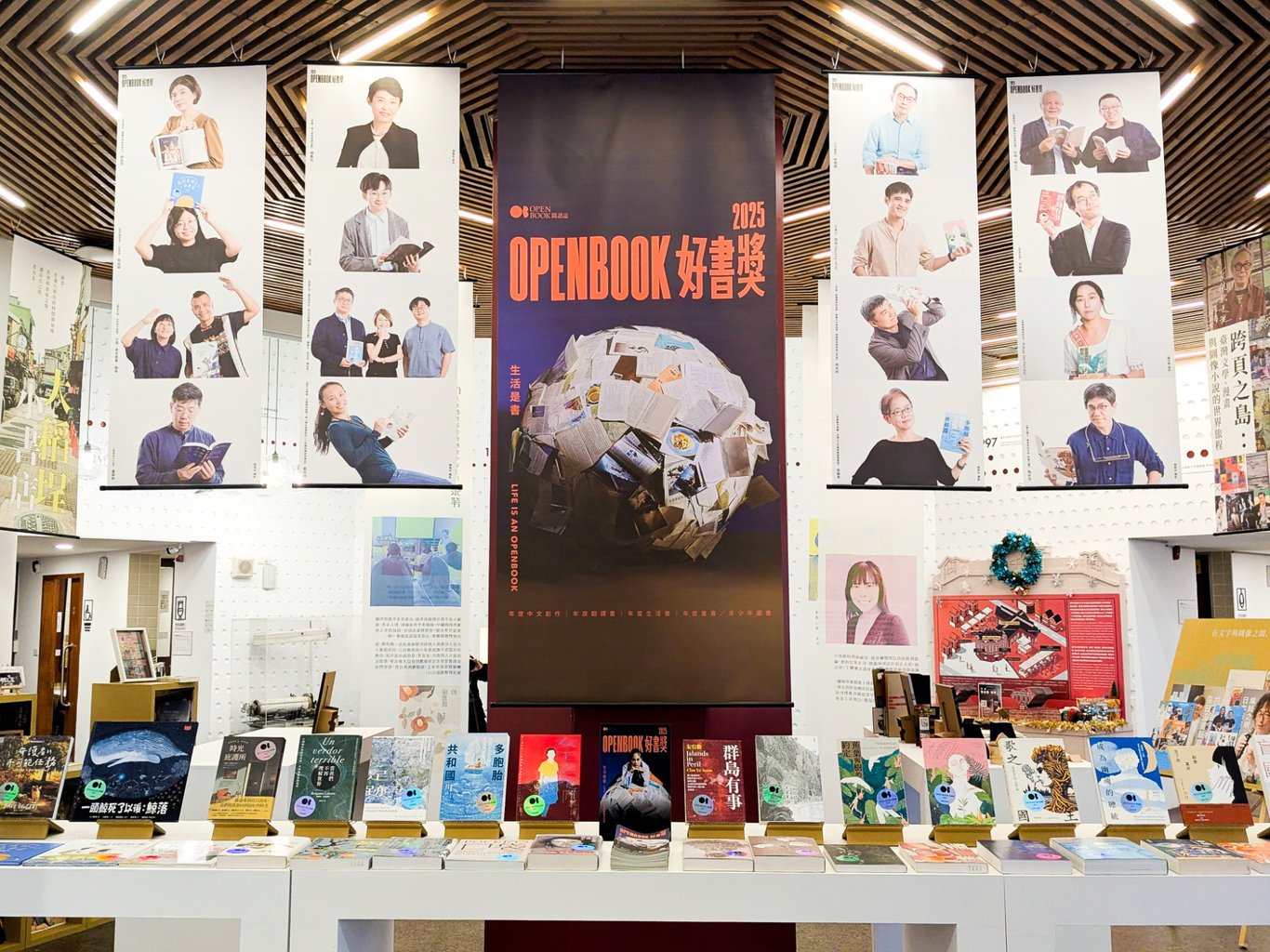 一日限定的「2025 Openbook年度回顧特展」由飛文工作室的葉飛和林峰毅擔任雙策展人,除了陳列今年度得獎作家與40本得獎書,並採用多樣的展示設計,以不同的觀看高度與向度呈現展示內容,讓讀者回顧Openbook過去一年備受矚目的精彩報導。