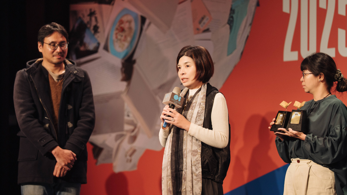 典禮最後,Openbook閱讀誌總編輯周月英在說明好書獎一整年細緻的評選流程,以及好書獎後續與全台各地實體書店、線上書店及圖書館的推廣與合作。她並邀請全體工作人員上台,一同以掌聲向所有作者、出版者表達敬意與感謝,為典禮畫下溫暖的句點。●(全文於2025-12-26在Openbook官網首度刊載)