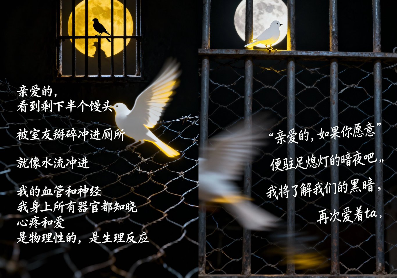 注:在看守所的时候,放风场的铁丝网外面经常有很多驻足的小麻雀,我每天早晨吃3/4的馒头,剩下的1/4用来喂它们,喂饱我自由的灵魂。是为#放风场麻雀系列,这个系列的片段写给许志永,出狱后整理呈现。
