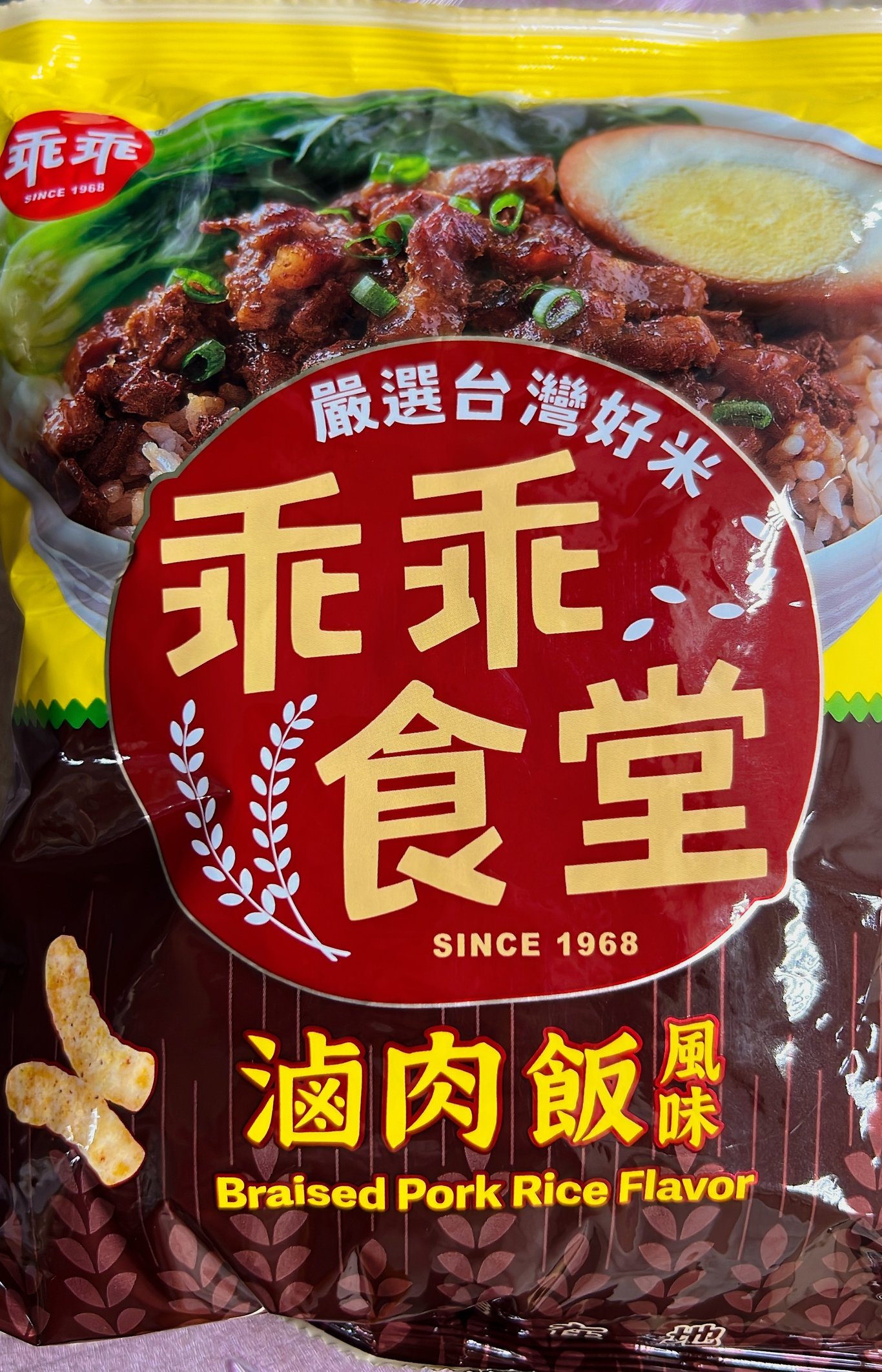 這是乖乖的在地小吃系列,台灣出名的滷肉飯當然在列。吃起來倒有點能想像,有點醬肉香氣,也有點甜,唯一缺少的就是紅蔥頭的香氣,另一個缺點就是味道和五香乖乖實在太接近,喜愛五香味的應該也愛這個口味。不過,還是能夠聯想到滷肉飯的味道,這點還算成功的。
