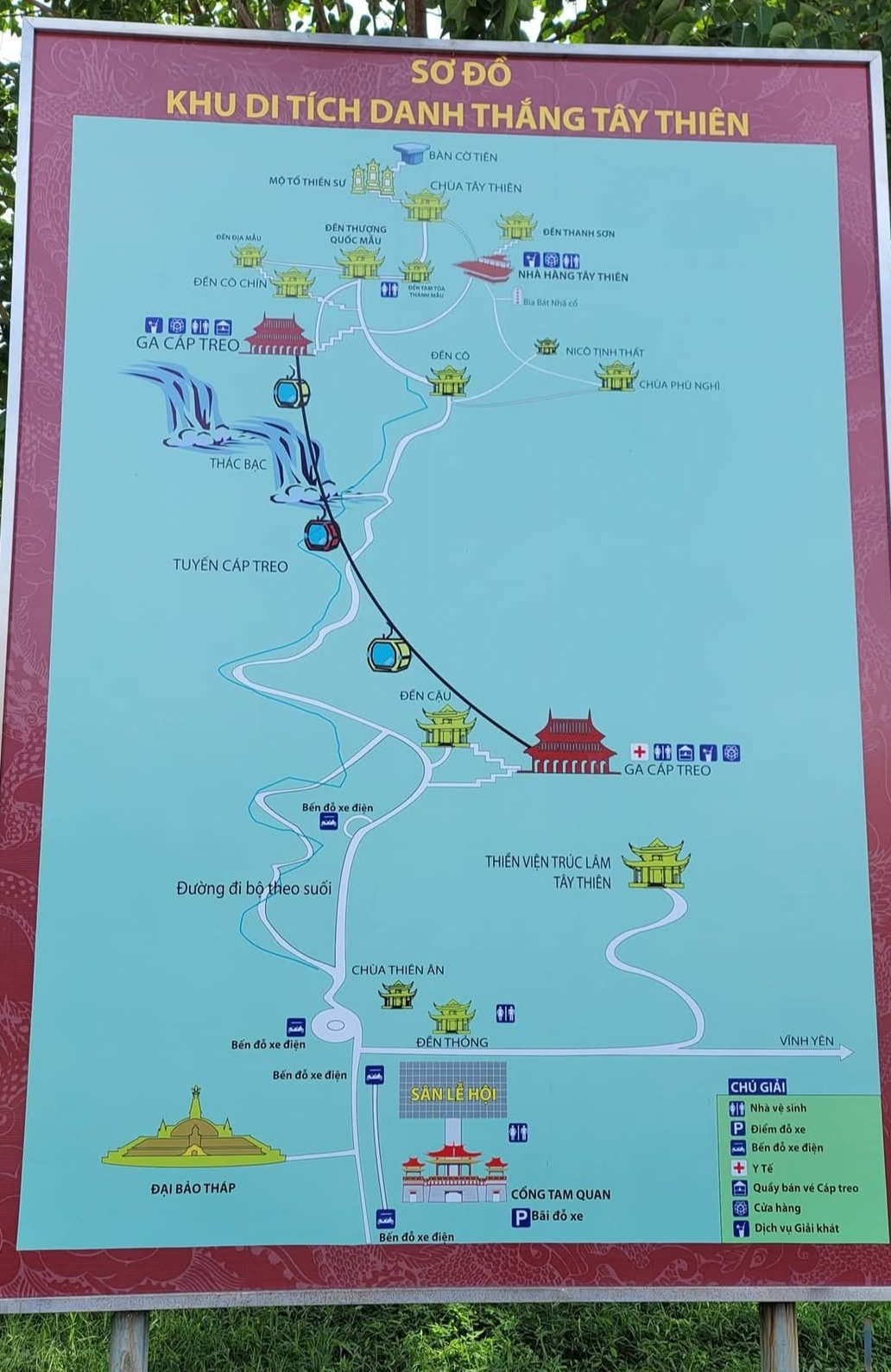 三島的山下則是西天風景區,低海拔及平地,諸多的遺跡及具有悠久歷史的宗教寺廟,為越南人宗教信仰中心及郊外踏青的好去處。一般我是坐公車抵達山下,再徒步登山,另也有登山纜車可供遊客及香客搭乘。