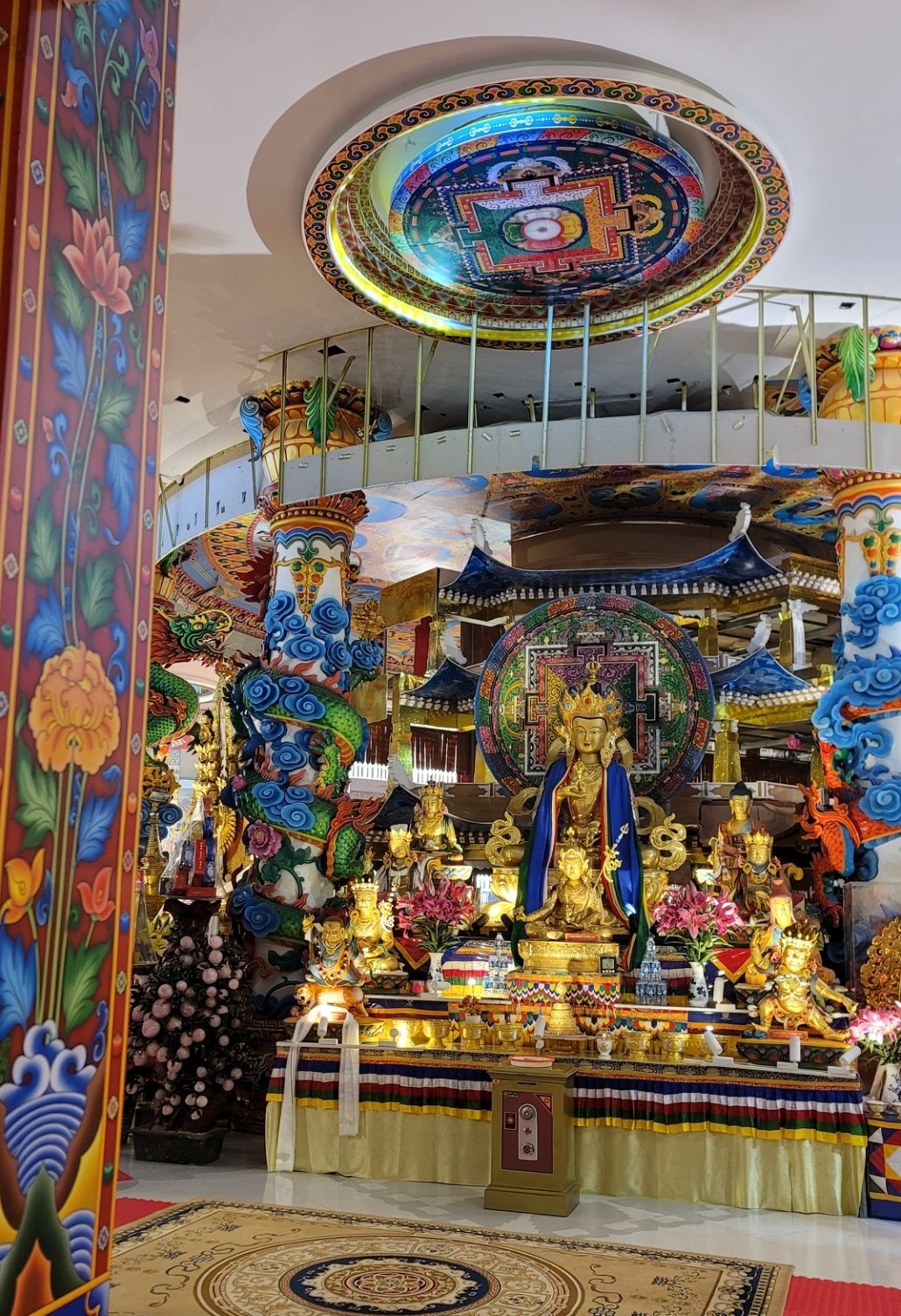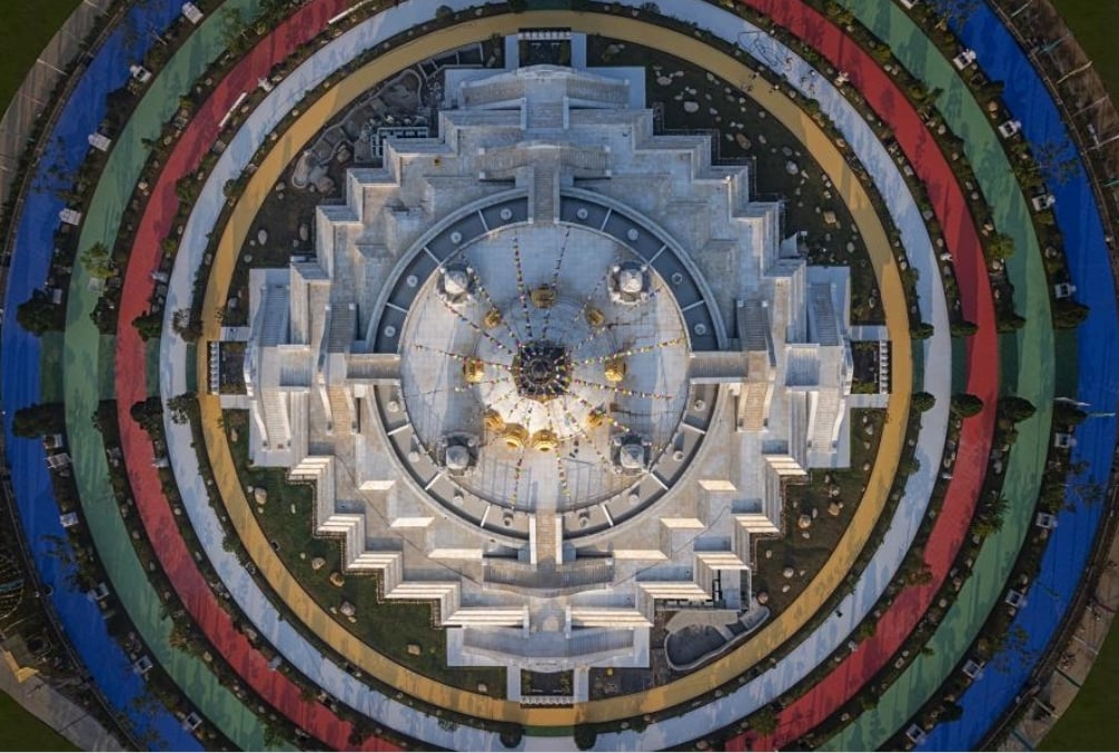 2023年初竣工的西天曼陀羅塔建築群的一個重要而獨特的部分,是環繞大佛塔的五色微圈。可以說是一個極為獨特的設計,在世界上是前所未見的,並且蘊含著多層深刻的內涵。