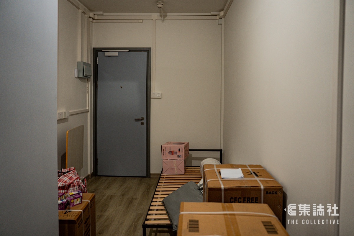 他的單位內堆滿雜物,包括啟福居提供的物資包,內有沐浴露、拖鞋、毛巾等日用品;以及從社福機構領取的摺枱、摺凳、水壺、小型雪櫃。跟盧先生一樣,同層另有六七戶居民行上行落搬運物資,忙於打掃和佈置。