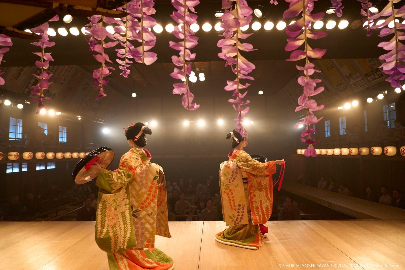 日本歌舞伎與藝伎歷史發展的活動場域曾有重疊,遊廓與茶屋重疊,加上歌舞伎演員與藝伎群落文化往來頻繁,歌舞伎與花街文化藝術演出也有所交流, 這樣的現象在日本電影《國寶》(Kokuho)片中也被忠實呈現,一開場黑道大哥宴請賓客就有邀請藝妓作陪,並觀賞舞台上的歌舞伎女形演員的演出,而片中由男主角之一的吉澤亮飾演的,擁有盛世美顏與天才技藝的歌舞伎喜久雄,前半生也跟由高畑充希飾演的青梅竹馬藝伎有著愛恨糾纏。