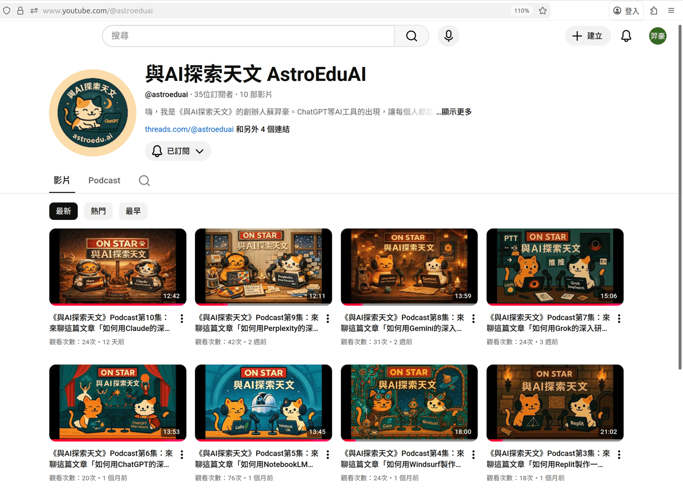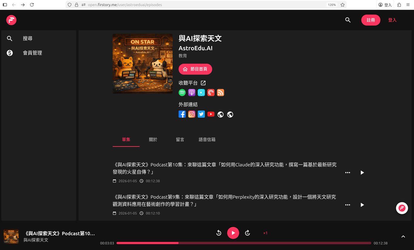 🔗《與AI探索天文》Podcast上架平台的彙整頁面 open.firstory.me/use...