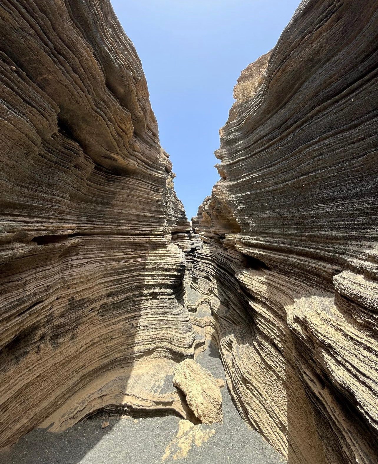 由自然觀景台望去,看見延綿不絕的岩漿之海, 這是火山爆發,火海熔岩遇上冷空氣時,岩漿在流動間一邊變化一邊凝固,波浪般起伏的火岩石就此𣊬間形成。此奇觀叫Las Grietas, (The Cracks / 裂縫) 紋理深長且曲又窄,這是大自然遺留下來的力量。 在此地方,我看見地理教科書上大小不同的Volcanic Rock (火岩石),彷彿此地是地球的第一章,一切由火山爆發開始。