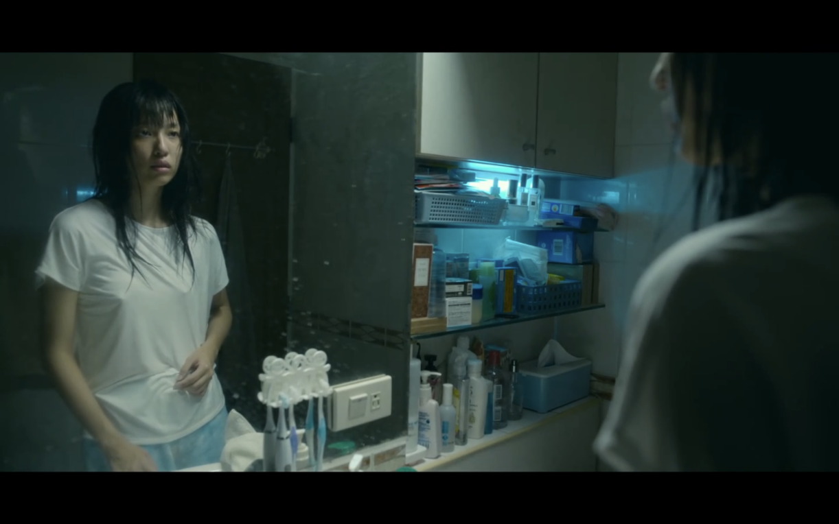 此时电影进展到了那个被短视频用做噱头的母女开房相遇情节。小蓝必须面对现实,她再次在镜头前谈起身体,她说身体发烧的时候一点办法也没有。