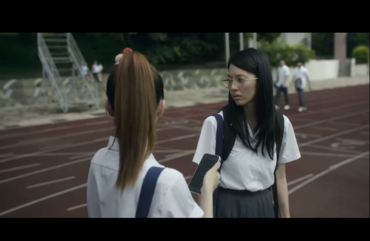 但镜头拉远,我们发现小蓝的这段关于身体的剖白实际上是对教训她行为有偏差的男老师的回应。她在有意识地表达和反击,她或许还有别的自救路径。