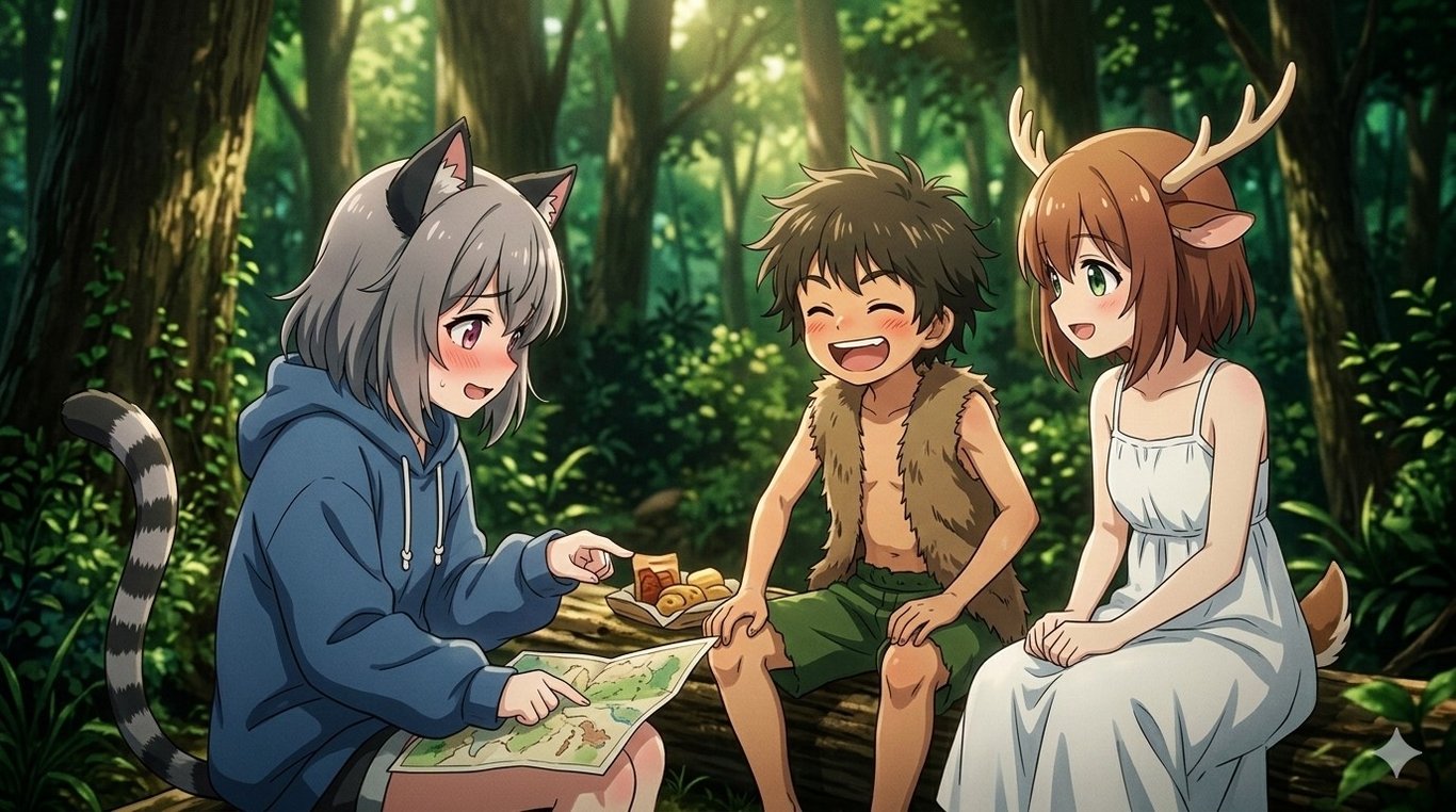 出發前,阿貓越來越不安....,野人君跟小鹿...,真的想跟我做朋友嗎?