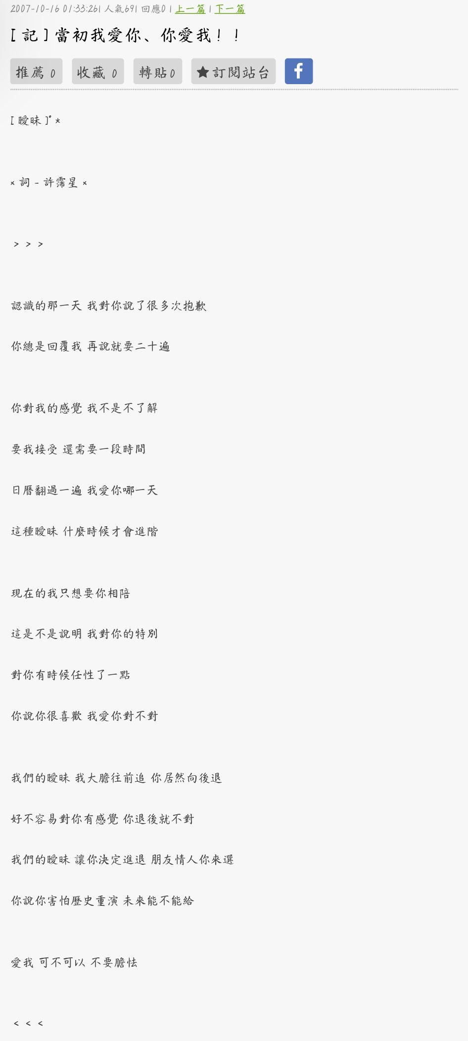這詞大概是在2007/09/15到2007/10/15間完成。