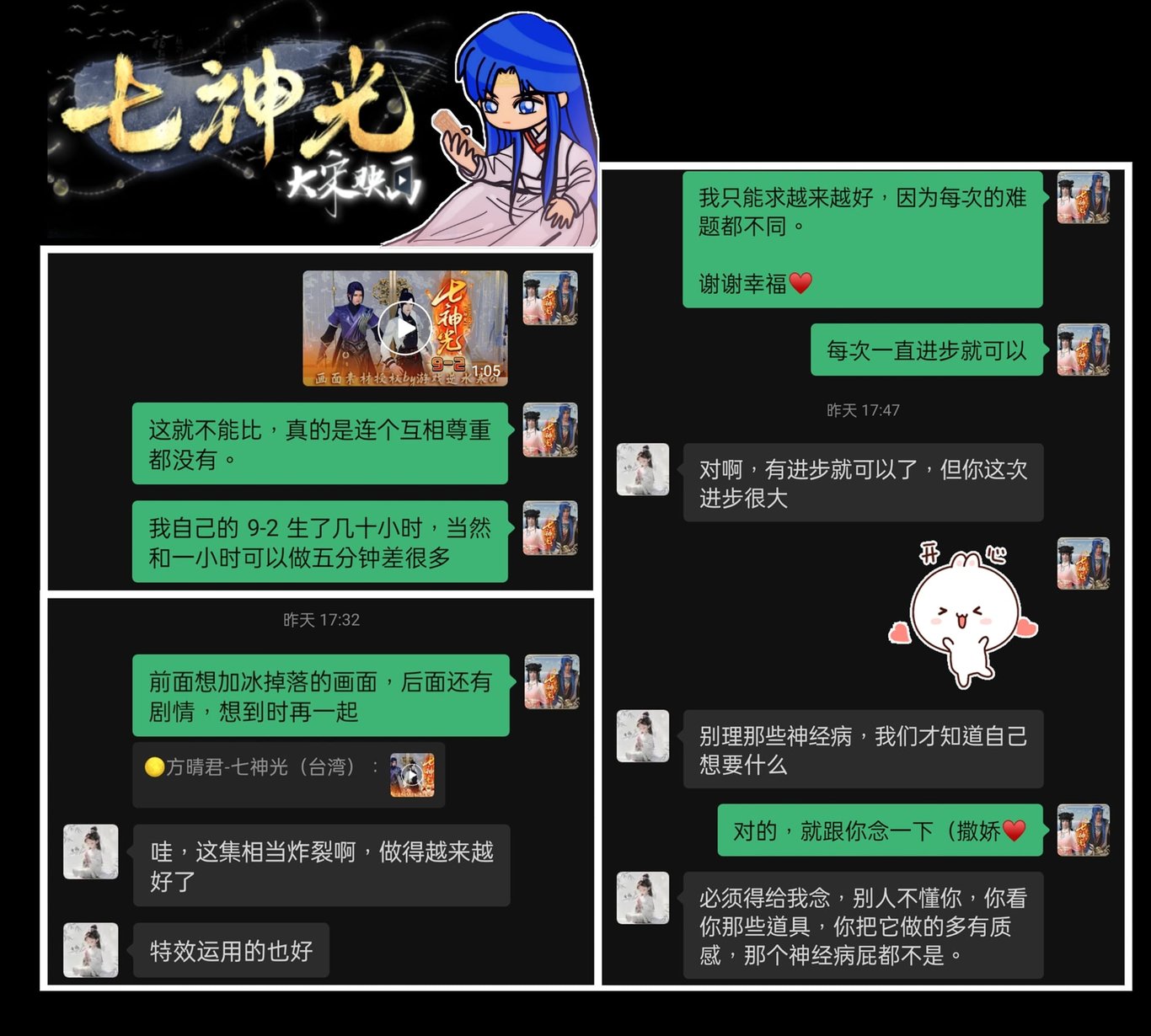 我這截圖的朋友幸福也是求質量的,我的《七神光》第九集之2超震撼的,她看了根本覺得炸裂,因為很難呈現,所以我做好幾天,幾十個小時,才那麼一點,勉強一分鐘。(就是下方這一集)
