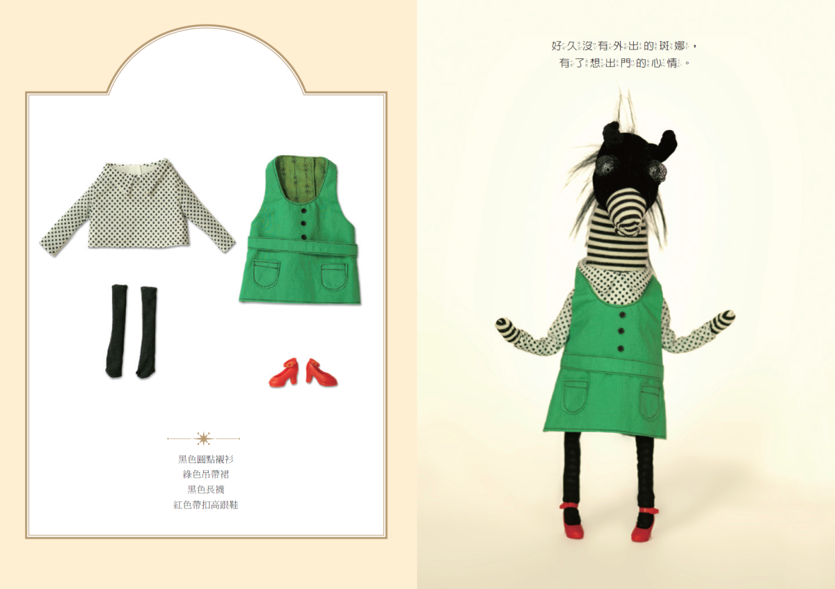 書中主角斑娜的穿搭極具個人風格,被問及是否為她平常的風格,她搖頭笑說:「我們平常無法達成的事,就在玩偶身上實現。」她本就喜歡製作玩偶衣服,這一次將興趣在作品中發揮得淋漓盡致。