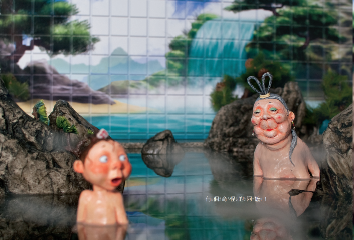 兒時常去的澡堂裝潢風格老派,裡面有假山假樹,還有一隻看起來很假的仙鶴。這種古裝場景讓她聯想:「應該有個山神住在那裡吧!」於是她將男山神改成仙女,設定為住在澡堂已久的老仙女,構築出《長壽湯仙女》的故事起點。她將現實中看到的場景,有邏輯地轉化為奇幻的角色。