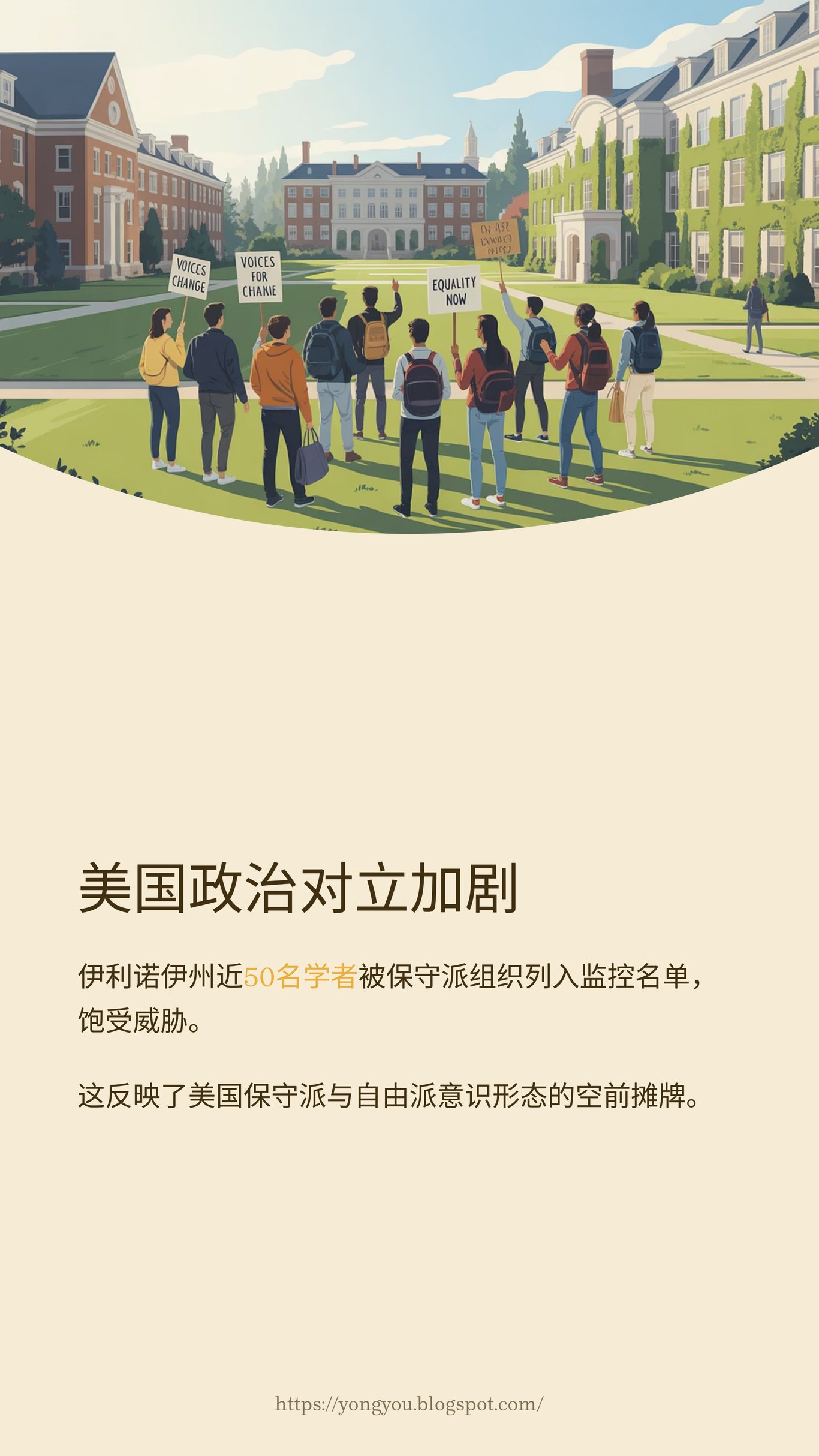 而在美國,政治極化催生了同樣令人不安的現象。由保守派青年活動家查理·科克(Charlie Kirk)創立的非盈利組織「美國轉折點」,創建了一個名為「教授監控名單」的網站,將近50名伊利諾伊州公立大學的學者列入其中,指控他們為「激進教授」,並公佈其個人信息。據《芝加哥時報》報導,名單上的部分教授已收到含有強暴和死亡威脅的仇恨郵件。在科克本人近期不幸遇刺身亡後,這種威脅更有升級之勢。