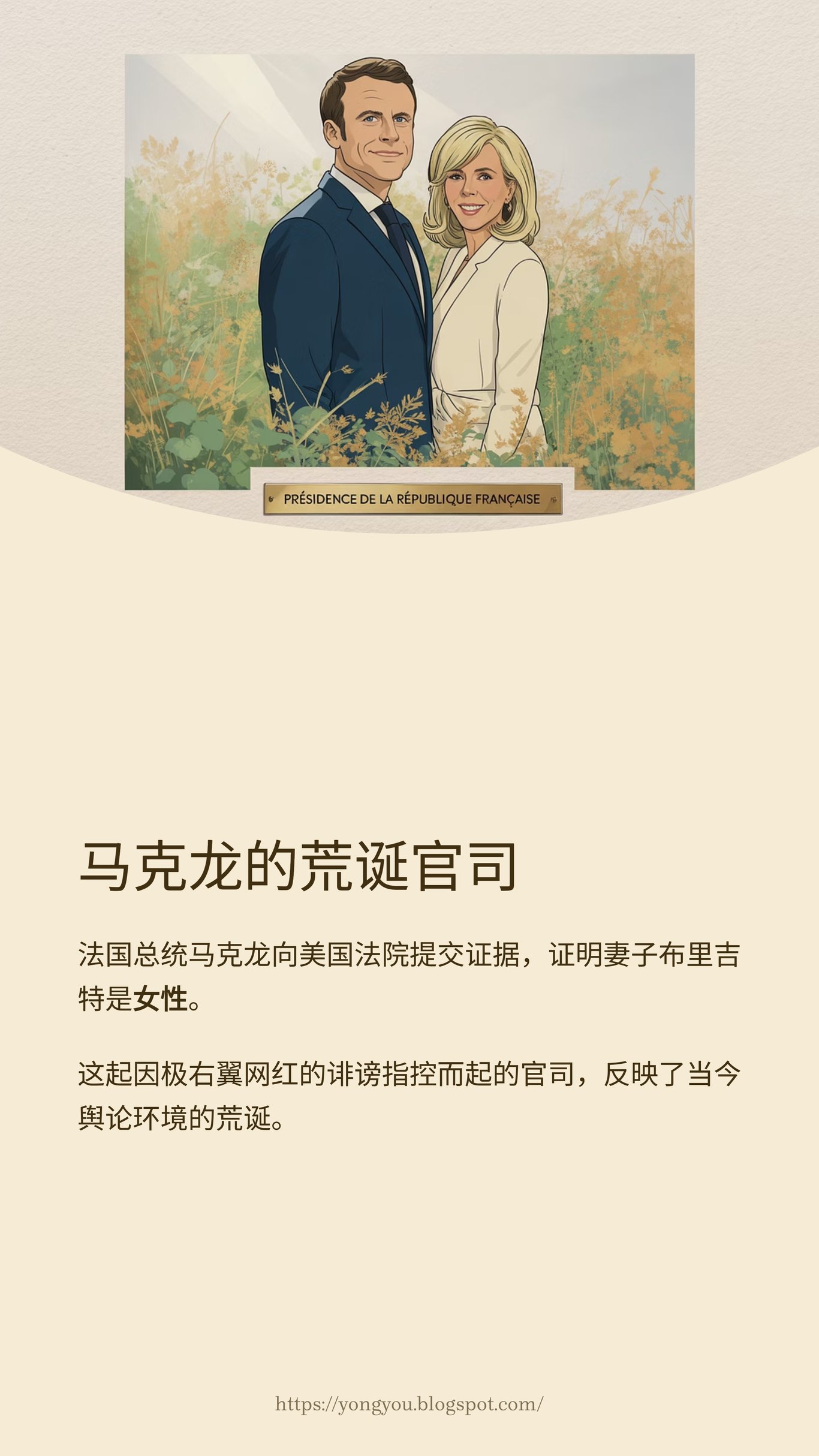 一個極端的例子來自法國。據BBC報導,法國總統馬克龍夫婦已向美國法院提交包括照片和科學證據在內的材料,以反駁關於第一夫人布里吉特·馬克龍是變性人的陰謀論。這一指控由美國極右翼網紅坎迪斯·歐文斯(Candace Owens)在社交媒體上大肆傳播。一位國家元首需要通過法律手段來證明其配偶的生理性別,這一事件本身就凸顯了當今輿論環境的荒謬與惡意。