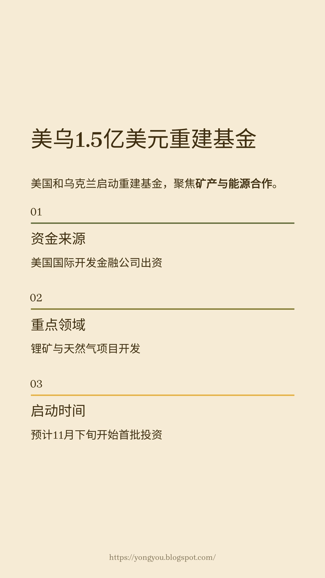 與此同時,美國與烏克蘭正在為戰後重建鋪路。據《金融時報》報導,兩國已正式啟動一個規模為1.5億美元的重建基金,初期將聚焦於礦產和能源領域的合作。該基金由美國國際開發金融公司(DFC)和烏克蘭政府共同出資,預計最早將於今年11月下旬啟動首批投資項目。