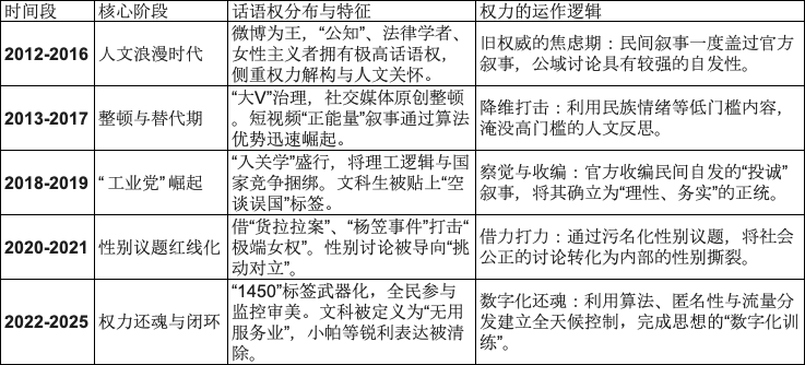 这种闭环并非一夜之间落成。如果拉长视线,去复盘过去十余年中文互联网的话语权更迭,会发现这是一场经过精心考量的计划。在这场演变中,技术不是通往自由的阶梯,而是权力精准校准社会的刻度尺。从2012年开始,一切就早有预谋。