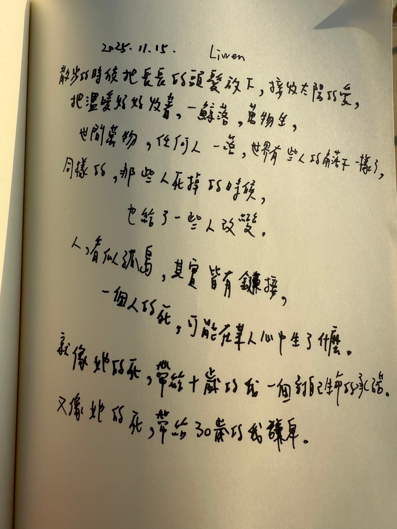 我想寫一本厚重的書 沒有邏輯沒有前後,沒有好人壞人,沒有中間值,只有真實。寫作很久才知道騙人很簡單,市面上不騙人的文字太少了,我只想寫真實發生過的事情,那些故事曾經震撼我曾經震碎我的事情,他們說沒有多少人會看書了,那些文字有什麼意義?