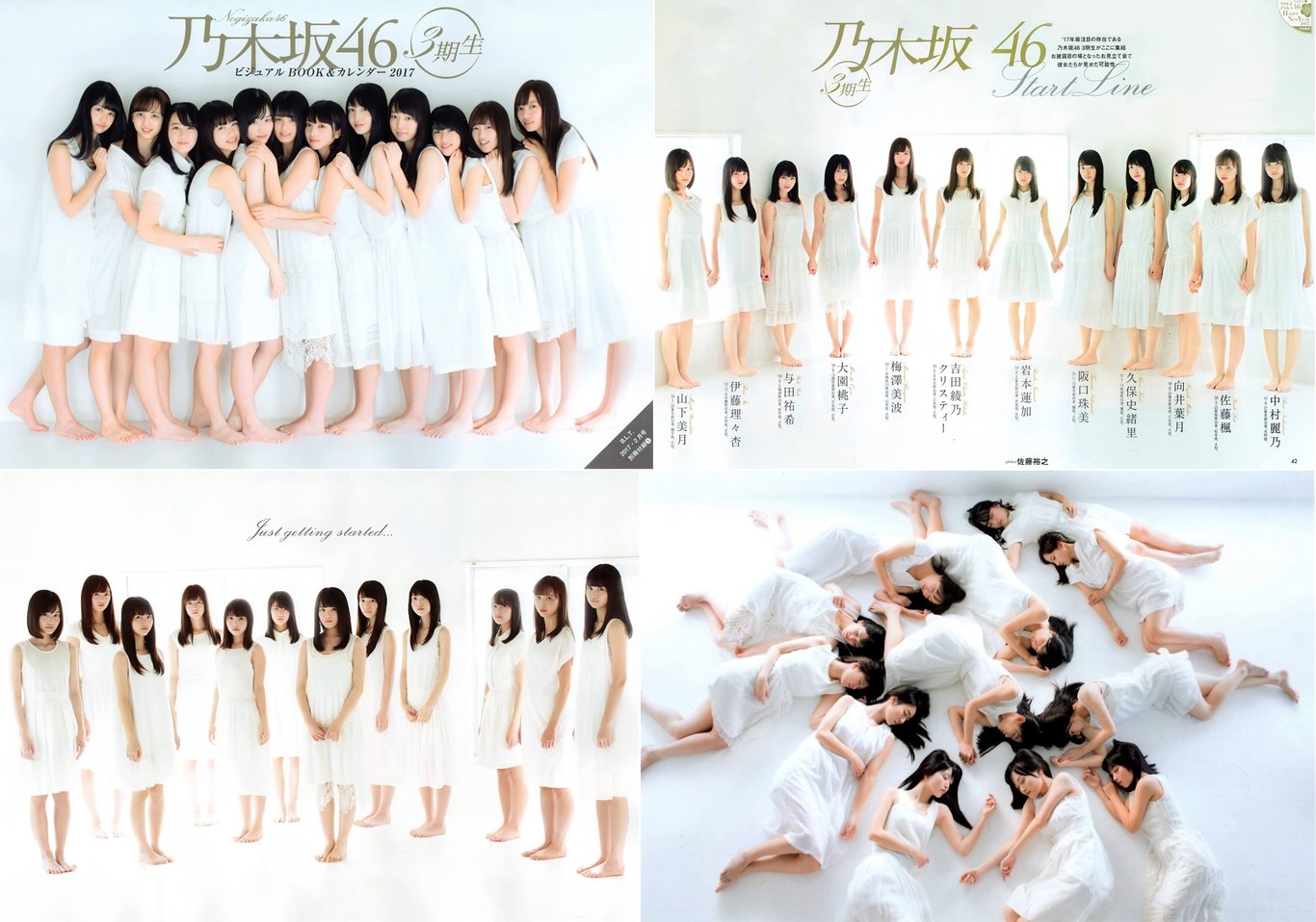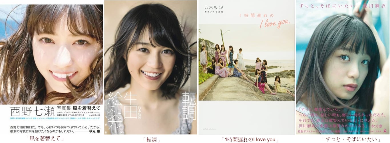 Oricon寫真年榜公佈,十大銷量中有四本來自乃木坂46,分別為第一名西野的「風を著替えて」(風為衣裳)、第三名生田的「転調」、第四名團隊的「1時間遅れのI love you」、與及第九位深川的「ずっと、そばにいたい」(永遠想在你身邊)。另外,公式對手AKB48的總選舉特輯寫真集,連同集團旗下AKB48的王牌渡辺麻友、48集團王牌指原莉乃、NMB48隊長山本彩等三位成員的個人寫真集,同樣合共有四部作品位居十大榜上,雙方可謂平分春色。