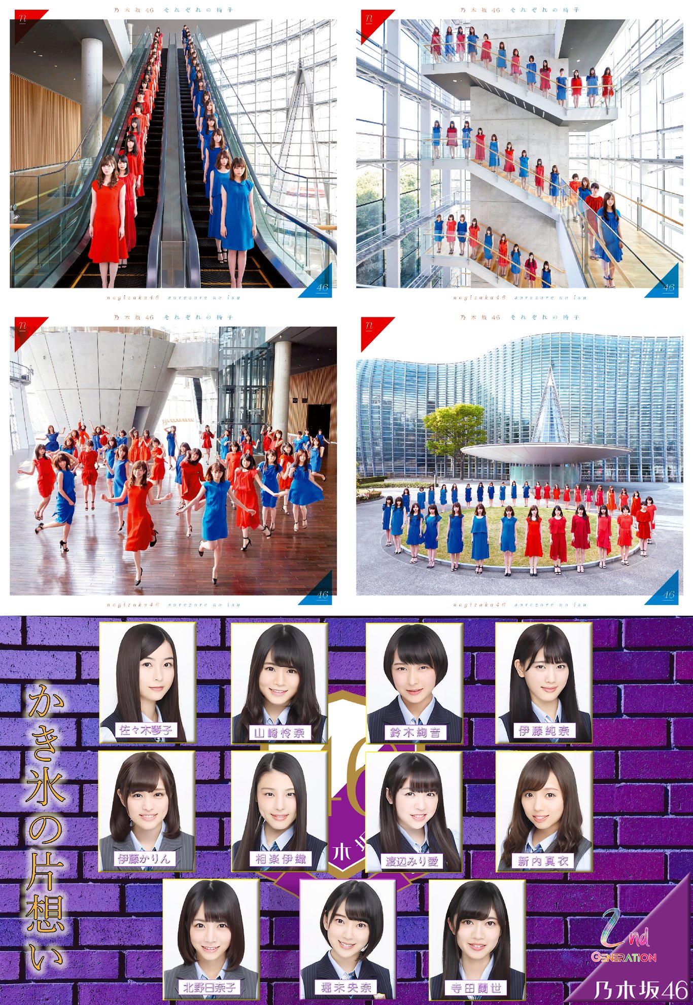 發行第2張專輯「それぞれの椅子」,初動27.4萬張,獲Oricon週榜及月榜第一。除收錄11至14單部份歌曲外,各版本合計收錄11首新歌,當中首次出現期別曲,分別為二期曲「かき氷の片想い」,及一期Under曲「欲望のリインカーネーション」。二期曲由堀担任中心成員。專輯銷量35.2萬張,2016年間第7位,得到日本唱片協會白金認證。