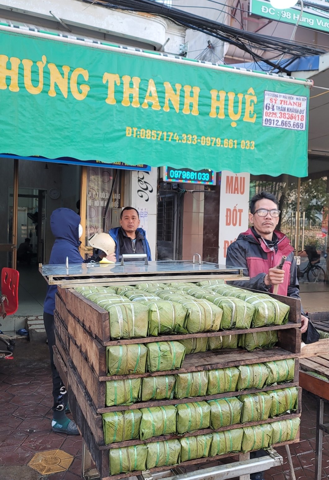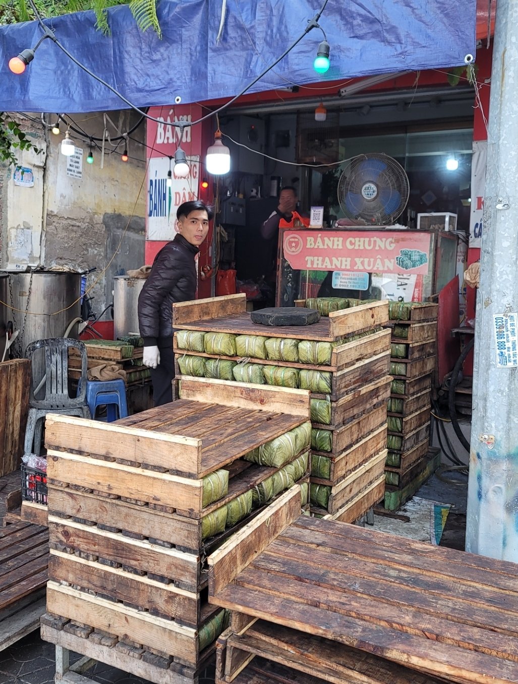 在永安工作時,宿舍對面的小吃店,過年前號召大家包粽子,目的是捐贈給越北偏鄉貧瘠地區,當時我用相機記錄了北越方型粽子的做法。如下圖,使用香蕉葉/尖苞柊葉 (lá dong)包裹糯米、綠豆、豬肉。