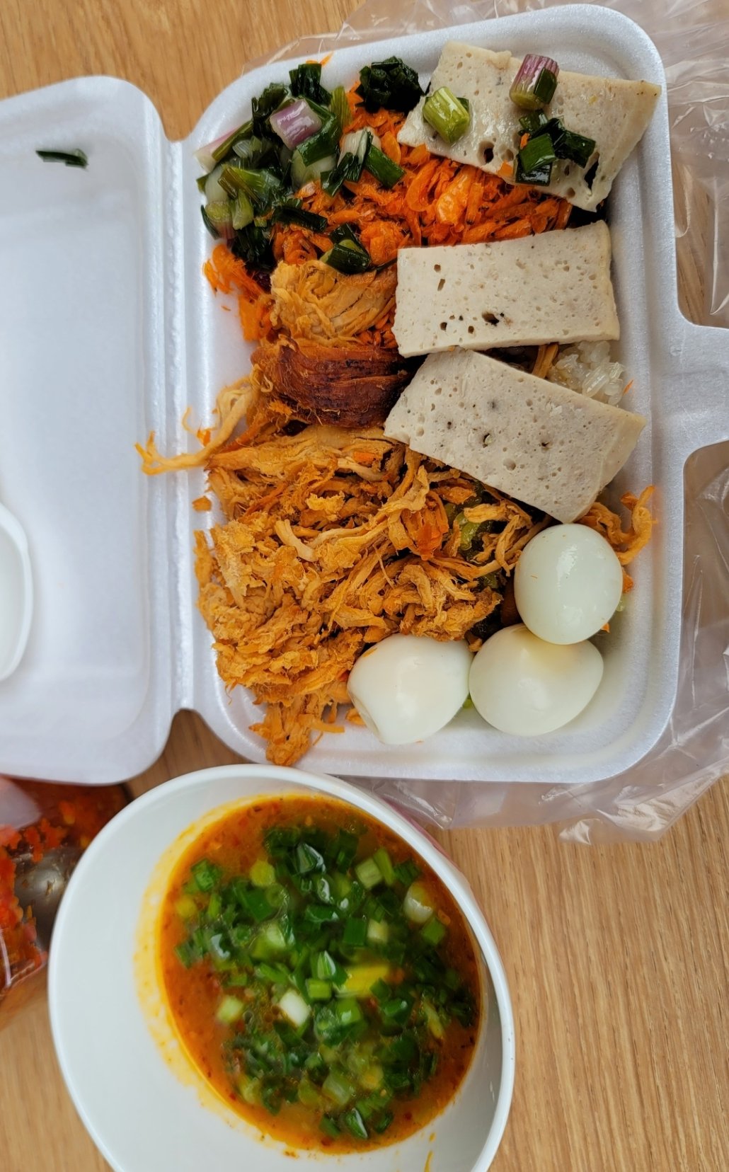 特別介紹一下木鱉果糯米飯,這是我特別喜歡的一種糯米飯。還未到越南前,從未見過如此鮮豔的橘紅色,初見時覺得有點怪異? 感覺有點不真實。 進而懷疑如此艷麗的顏色,是如何染色而來? 2023 農曆年前,我在海防市場親眼所見,鮮豔的橘色是由天然的木鱉果汁染製而成,完美呈現出獨特艷麗的橘紅色糯米飯。這道菜在越南傳統節日、拜拜及農曆新年和婚禮上,都是不可或缺,廣受歡迎的一道喜慶食品,越南人相信它能帶來好運。