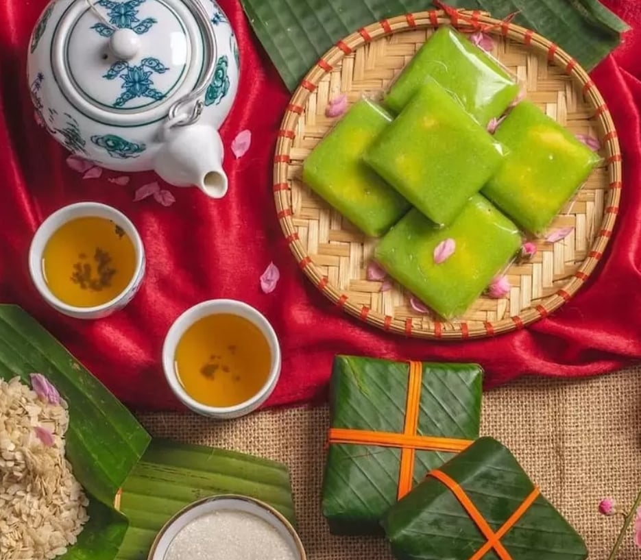 糯米糕是越南訂婚儀式中不可或缺的食品,與檳榔、水果,尤其是紅色的“xu xê”糕和綠色的“cốm”糕交相輝映,象徵著這對年輕夫婦對婚姻長久美滿的期盼。秋天在涼爽的河內,手捧一杯熱茶,品嚐一塊杭丹糯米糕,是人間美味。老城區大教堂前,悠閒的坐在咖啡館的門前,一盤綠米,一杯檸檬茶(Trà Chanh) , 一杯咖啡,人生幾何,夫復何求。