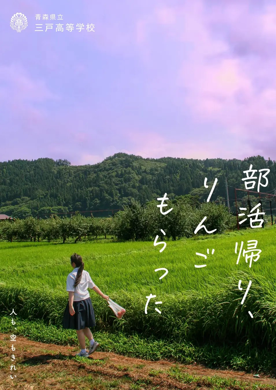 青森県立三戸高等学校邀請了從事廣告設計的專業人士進行廣告海報設計構思、拍攝、文案創意的分享和實戰輔導,老師和同學們製作出了這些具備專業水準的有趣廣告。