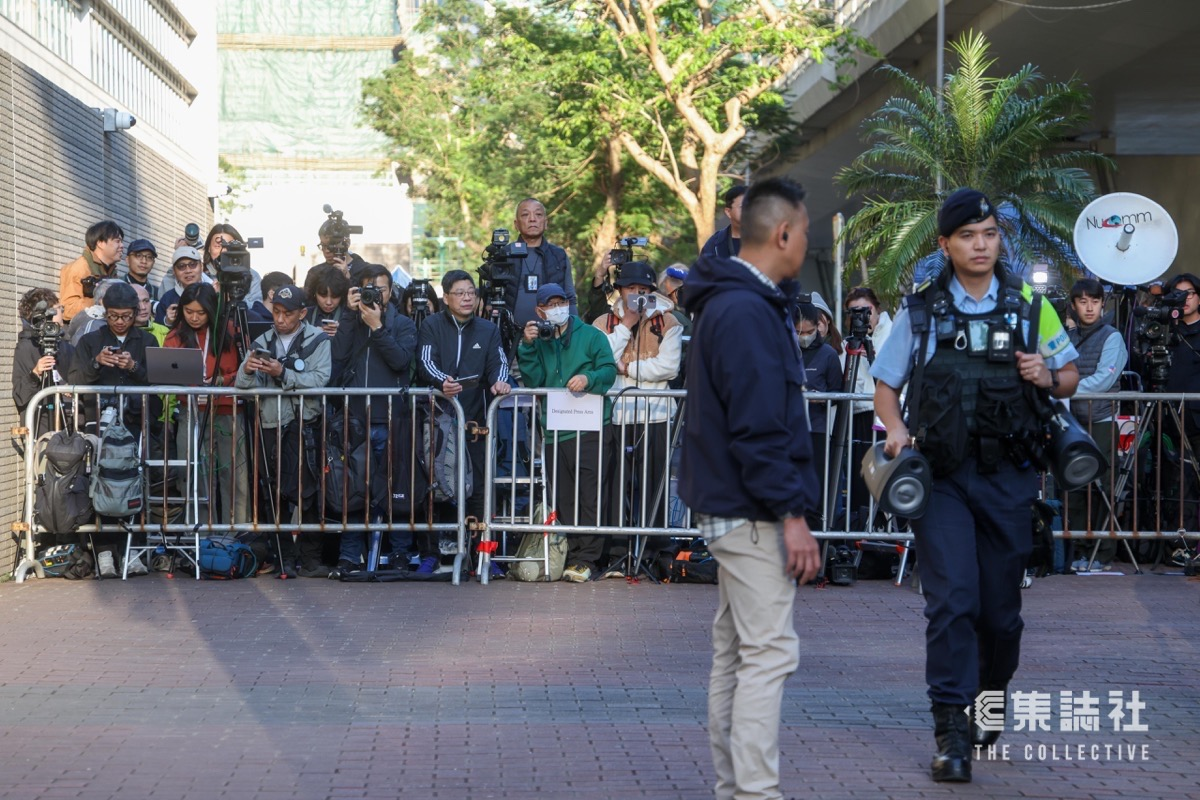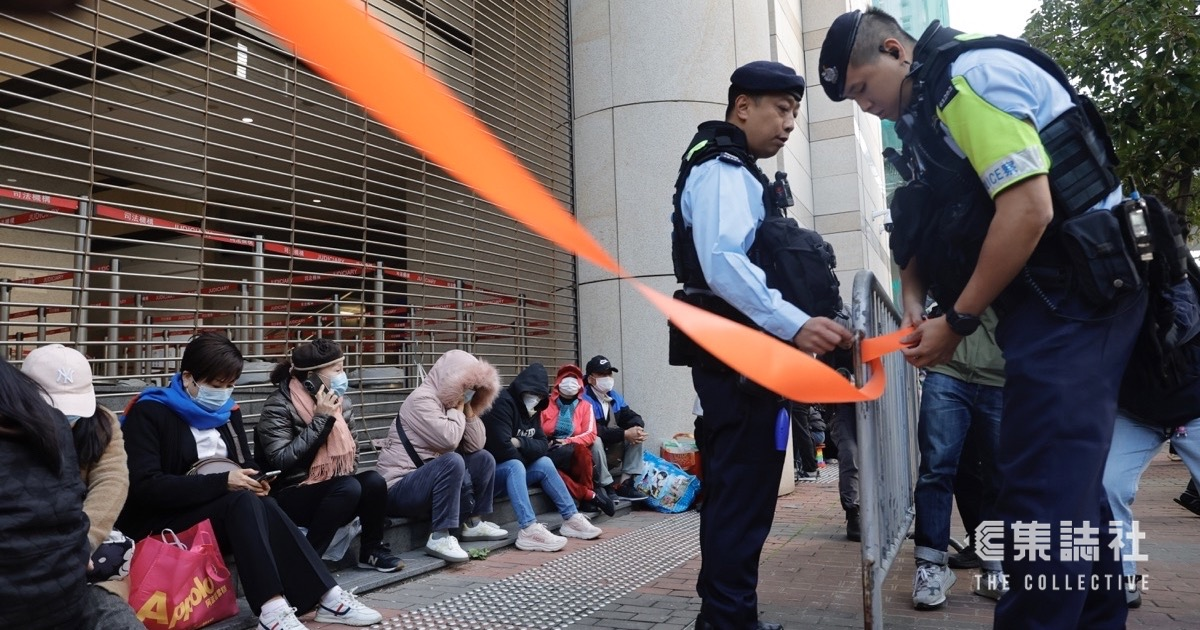 前壹傳媒集團創辦人黎智英、與《蘋果日報》三公司、六名編採人員被控「串謀勾結外國勢力」、「串謀發布煽動刊物」等罪;本案是首宗勾結外國勢力罪的審訊,案件橫跨五年,今早(15日)10 時於西九龍裁判法院頒下裁決。早上約八時,已有逾百人在庭外排隊等候,警方加強部署和巡查,不過約第 2 至 60 位都懷疑被「排隊黨」佔據,旁聽師相信只能進入延伸庭。