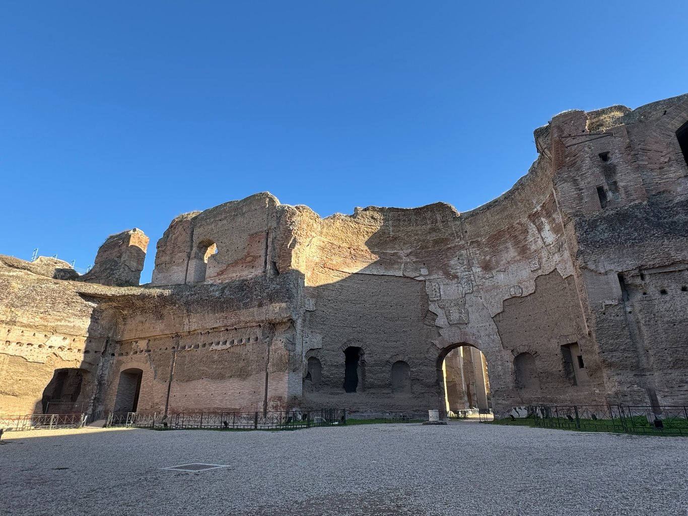 走这么远的目的就是为了来到卡拉卡拉浴场。如果对古罗马感兴趣的话就不能不了解古罗马的浴场文化。古罗马的浴室是公共生活的重要的一部分,不仅仅是洗浴,浴场中还包括了图书馆和健身房等功能。只不过看着这些断壁残垣很难感受到当时生机勃勃的场景,更衣室,浴室以及别的功能区在哪也分不出来。作为东北人,洗浴是文化中很重要的一部分。本来想在想象中走一遍洗浴界老祖宗一天的流程作对比对比,结果根本没有想象的空间。整个遗址只有这些巨大的墙壁,连当时一些什么洗浴用具啥的也没有展出。如果不要门票的话还算是个本地人没事遛弯的地方。对于游客来讲,这个地方的不值得拿出在罗马的宝贵时间专门来看一次。想要体验洗浴文化的话,欢迎来中国东北。