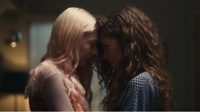 Rue 与 Jules 的羁绊是这场手术的典型案例,她们的关系仿佛是一种比爱情更致命的羁绊,它不是单纯的“爱”与“欲望”,而是通过社交媒体、谎言和脆弱交织成的依存。她们交换药片而非誓言,用颤抖的瞳孔代替“我爱你”的承诺。