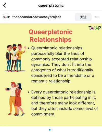 正如“酷儿柏拉图”(QueerPlatonic)这一新式关系标签,就代表了另一种情感表达模式 —— 既非纯粹的爱情,也非单纯的友情,而是在这两个概念间游走。