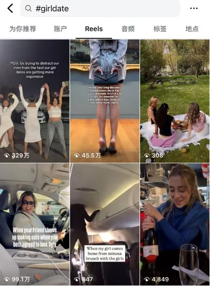情感的界限不再明确的当下,所谓的“假装约会”视频已经从 TikTok 蔓延至Instagram,并且形成了#GirlDate 等话题标签,进一步模糊了虚拟互动与真实情感之间的界限。