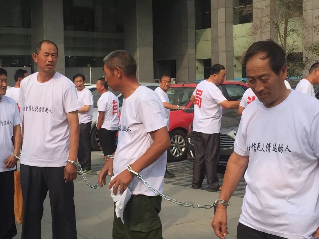 老工人自带锁链前往陕西电信总部表达诉求 照片由艺术家提供